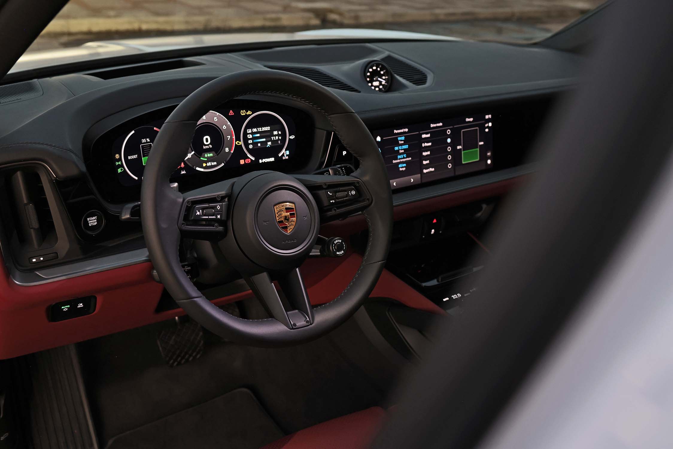 For the first time, the redesigned cockpit of the Cayenne includes a fully digital 12.6-inch instrument cluster with a so-called curved and free-standing design and variable display options. An optimised head-up display is available as an option. The standard 12.3-inch central Porsche Communication Management (PCM) display integrates harmoniously into the new dashboard and provides access to all