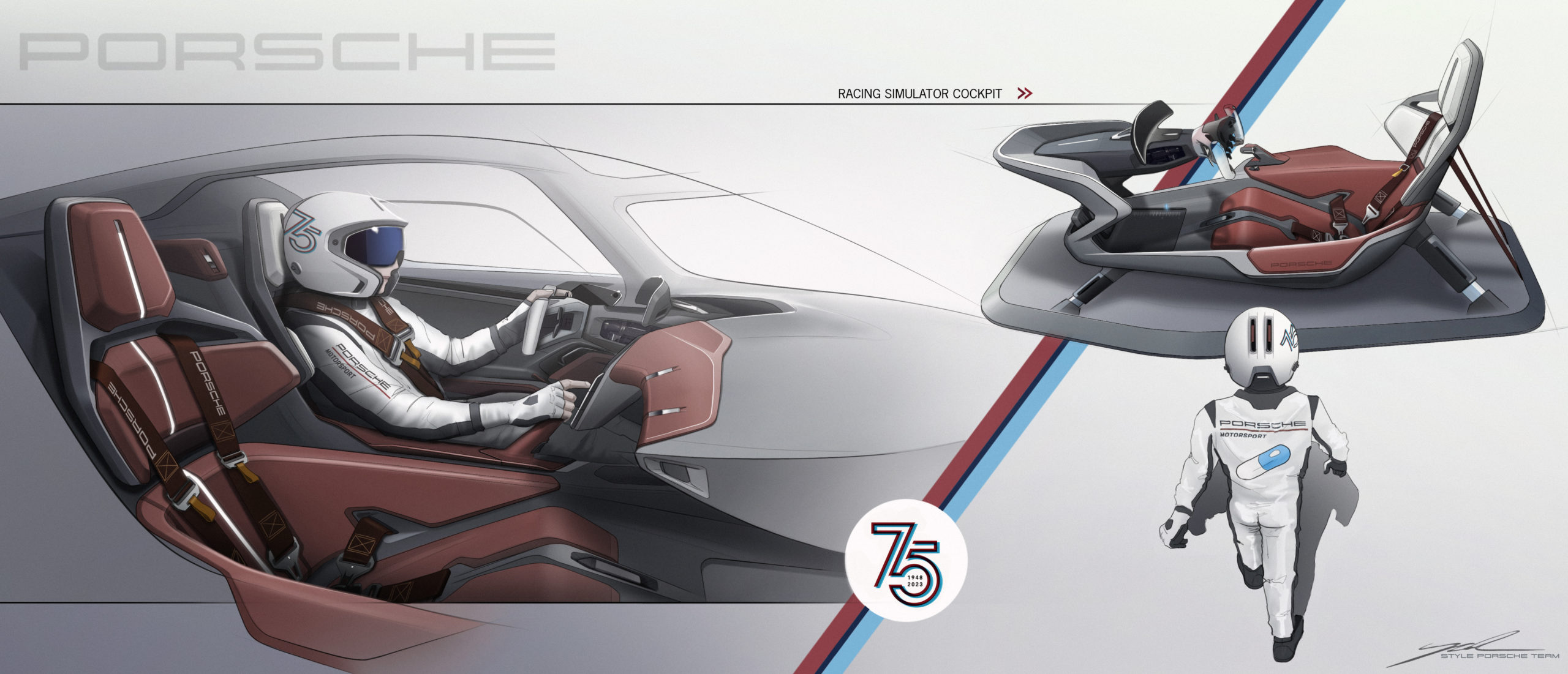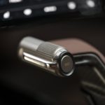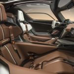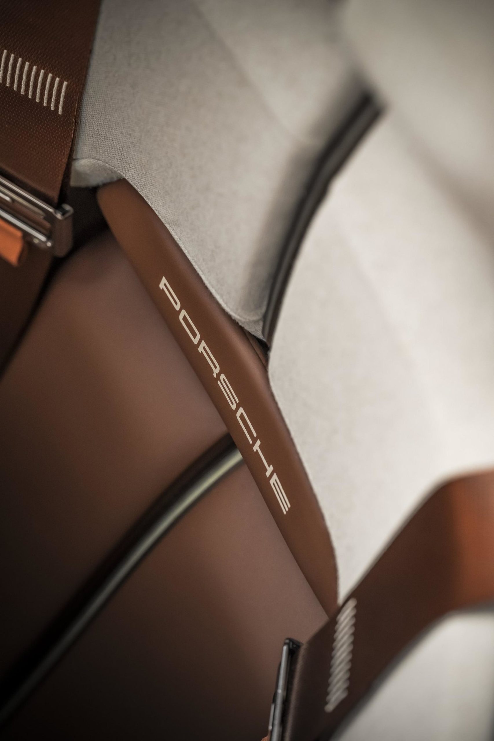 To enable quick adjustment of the distance between the accelerator and brake pedals, a scale is milled into the ’river’s footwell. Both occupants are secured with six-point seat belts. Andalusia Brown leather pads on the seat cushions and backrests as well as matching fabric sections in the integrated headrests play with materials and colour. The latter are easily removed with clips if, for example, the driver and passenger are wearing helmets and neck restraints on a race track.