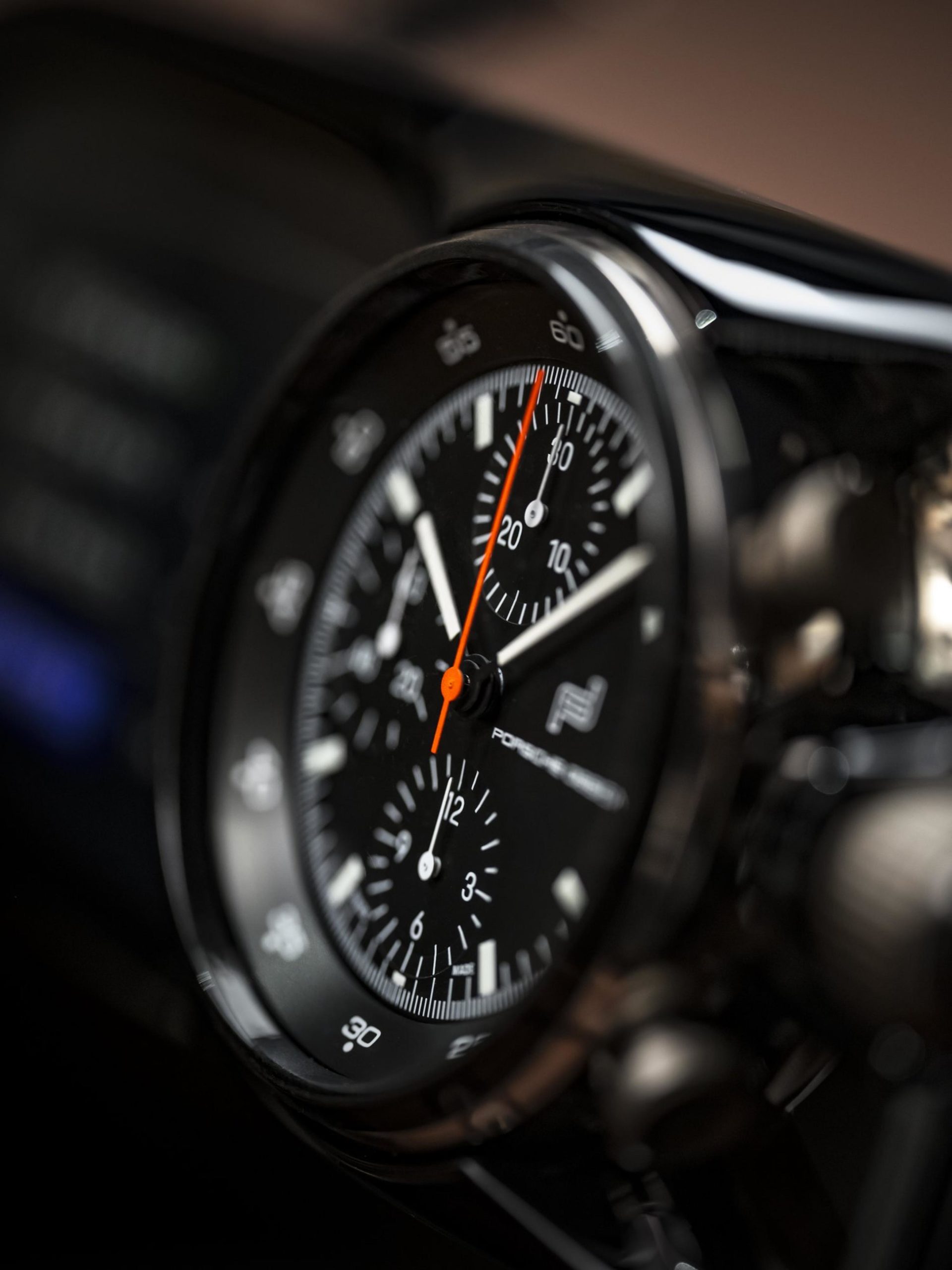 There is another interior highlight on the passenger side, where a bayonet system embedded in the instrument panel enables a stopwatch module to be quickly attached. The historical reference is unmistakable: in classic racing and rally cars, co-drivers often fitted a plate with stopwatches or a compact device with an odometer into the dashboard in this position. Porsche Design created a special timing module for the Mission X, with an analogue and digital display. The stopwatches are designed for both racetrack and rally use and can display the lap times or health data of the driver, among other information.