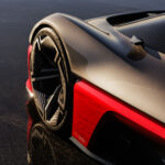 The cockpit canopy introduces a new architectural layout, maximizing visual drama and aerodynamic performance. The body integrates active aerodynamic elements, including a deployable rear spoiler and air brake, while a tunneled underbody and carbon tub suggest a lightweight construction optimized for track-ready behavior.