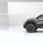 The vast body protection panels on the lower section are made with a considerable 20 cm clearance around the wheel arches. The high-seated body highlights the width of the 753 mm wheels mounted on 19 inch rims. The underbelly has been reinforced to provide greater protection for the battery located in the middle of the chassis.