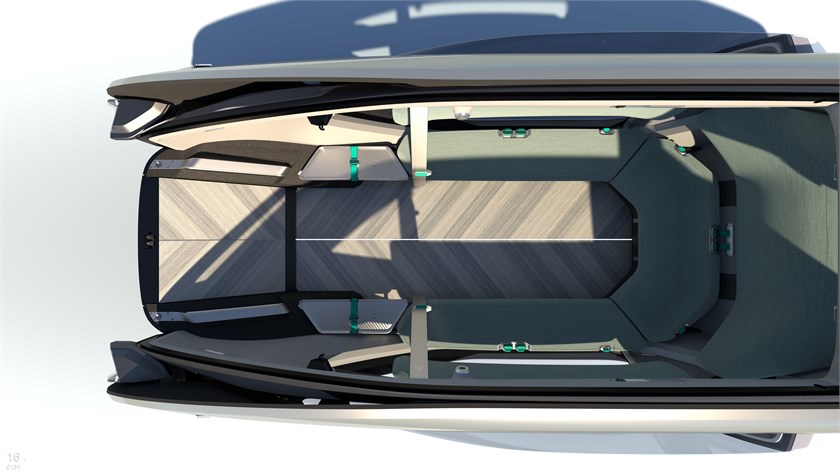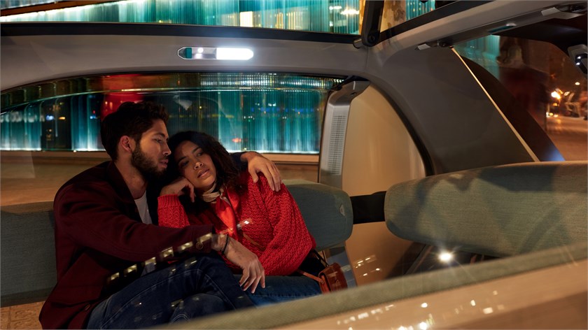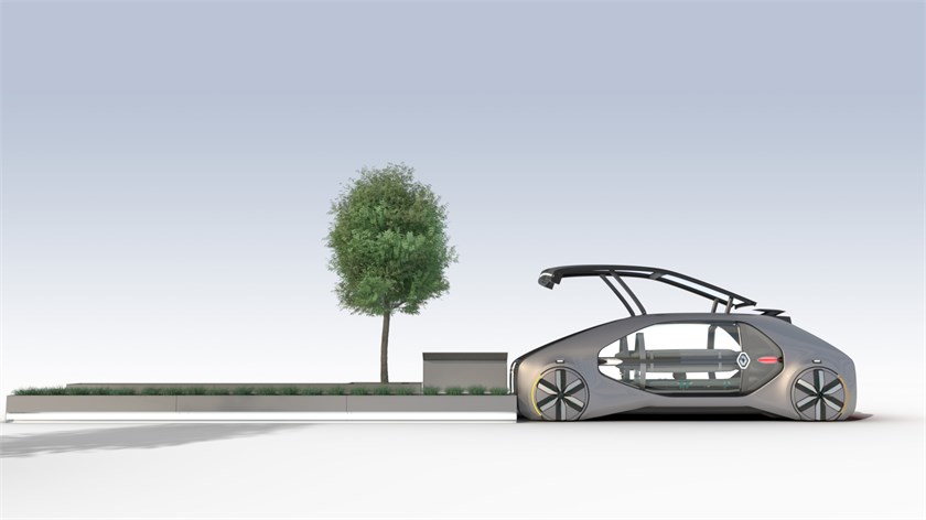 EZ-GO’s innovative architecture and cocoon-like styling was designed to maximize the field of vision of the autonomous system’s sensors, and allow natural light through the panoramic glass roof. The robo-vehicle’s height does not interfere with pedestrians’ view of the city. Once connected to its station, EZ-GO offers a wide flat floor flush with the boarding ramp, making it easy to get onboard, whether walking or with wheels. The characteristics of EZ-GO make it possible to change usage and user scenarios, keeping with the “Easy Life” approach which is at the heart of Renault’s DNA.