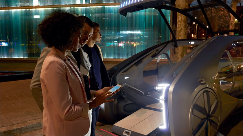 Renault introduced a robo-vehicle and ride-hailing concept, with an iconic design meant to integrate into the environment, and maximize new ways of moving around congested cities. A first of its kind, Renault EZ-GO, an electric, autonomous, shared « robo-vehicle » concept is both a vehicle and a service that allows people to hail a ride either from a fixed or mobile location. Renault believes vehicle-service integration combined with connection to city infrastructure – leveraging sensors, data analytics, connected services, multimodal systems and more – will be a key characteristic of successful mobility solutions and smart cities of the future.