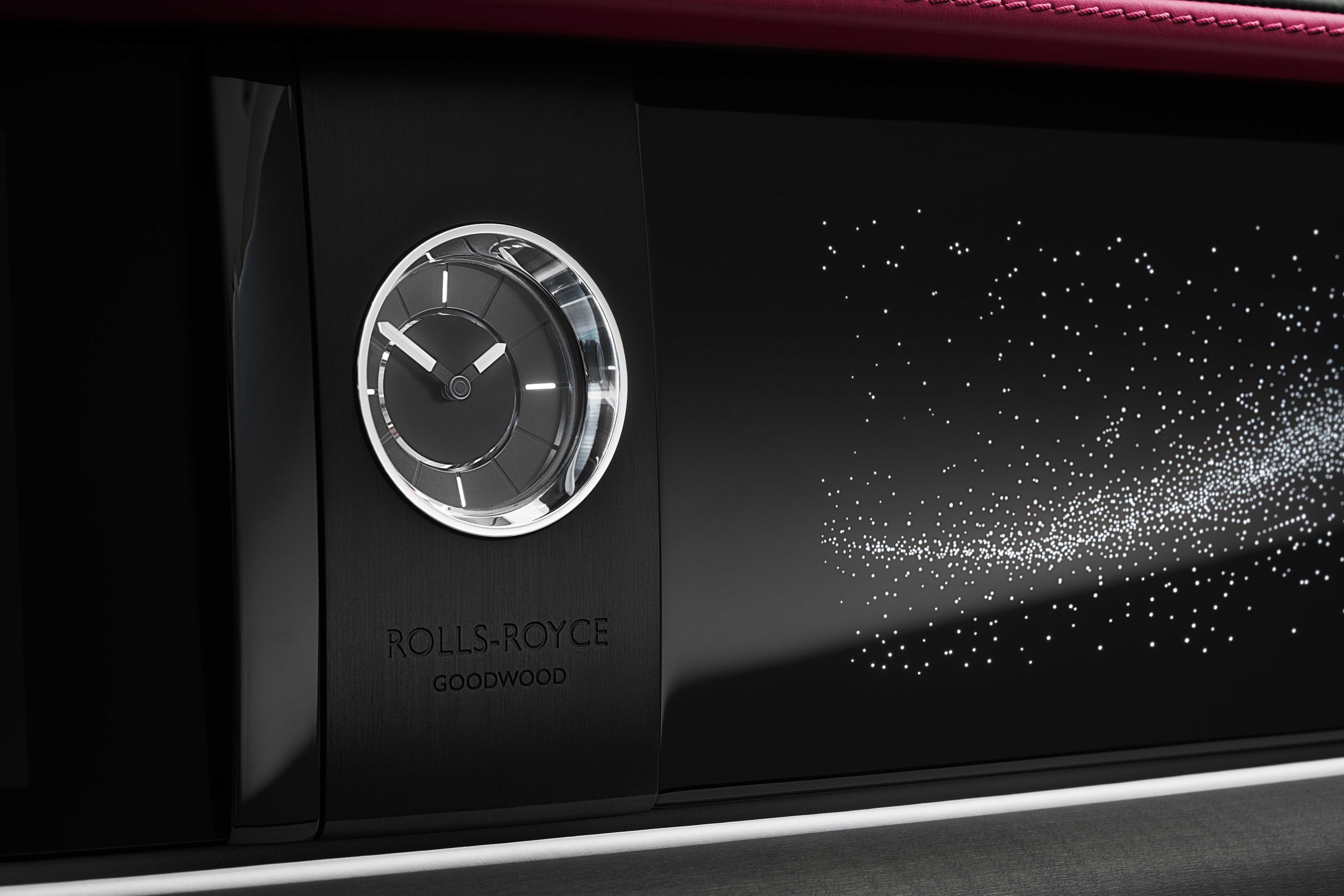 The ethereal night-time theme continues with Spectre’s Illuminated Fascia. Developed over the course of two years and more than 10,000 collective hours, it incorporates the Spectre nameplate surrounded by a cluster of over 5,500 stars. Located on the passenger side of the dashboard, the illuminations are completely invisible when the motor car is not in operation.