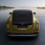 The silhouette’s most dramatic feature is Spectre’s fastback, which recalls the most evocative motor cars and watercraft in history. The seamlessness of the greenhouse surfacing significantly contributes to achieving the lowest drag coefficient ever for a Rolls-Royce. Following the roofline back, the tail lamps are set into the largest single body panel ever produced for a Rolls-Royce, which extends from the A-pillar to the luggage compartment. The jewel-like vertical tail lamps themselves are colourless for neutrality, in anticipation of the myriad of colourways selected by clients during the commissioning process. Their precision and reduced dimension complement the generous flow of the bodywork from the muscular shoulders backwards into the tail section with its characteristic tapering plan view.