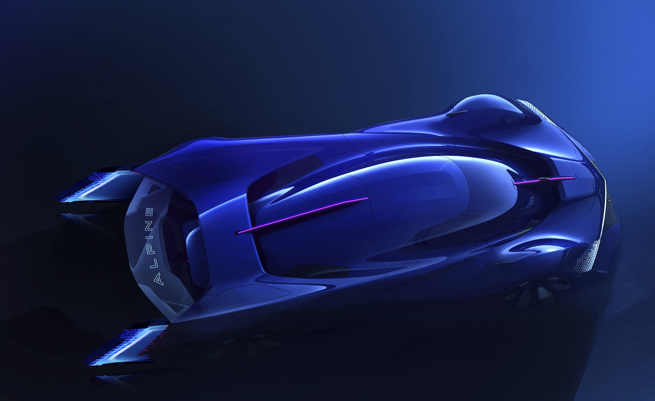 This concept car is more than 5 metres long, over 2 metres wide and less than 1 metre high – a dream car’s proportions. It is exceedingly agile and its sculpted shapes encapsulate Alpine’s future design language.