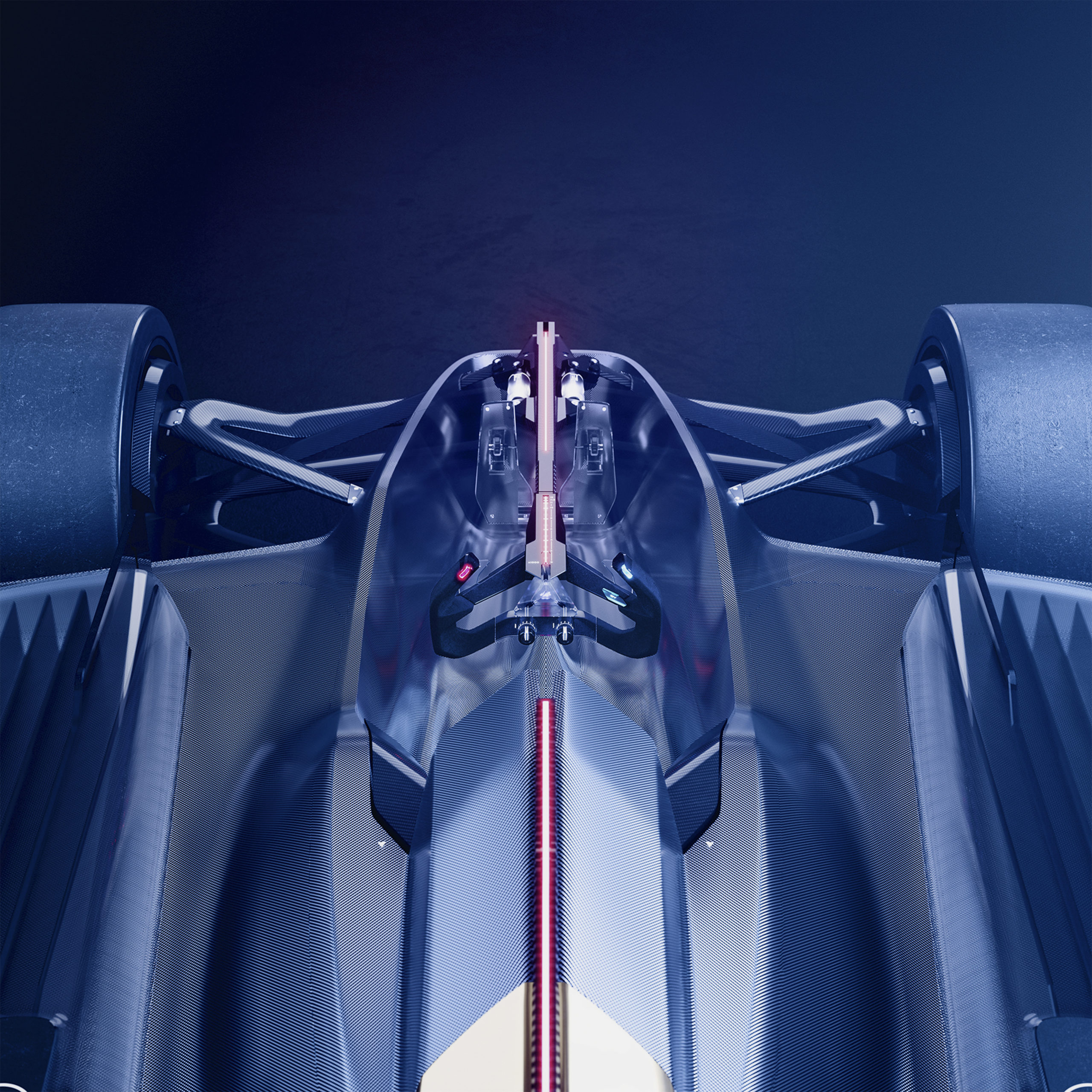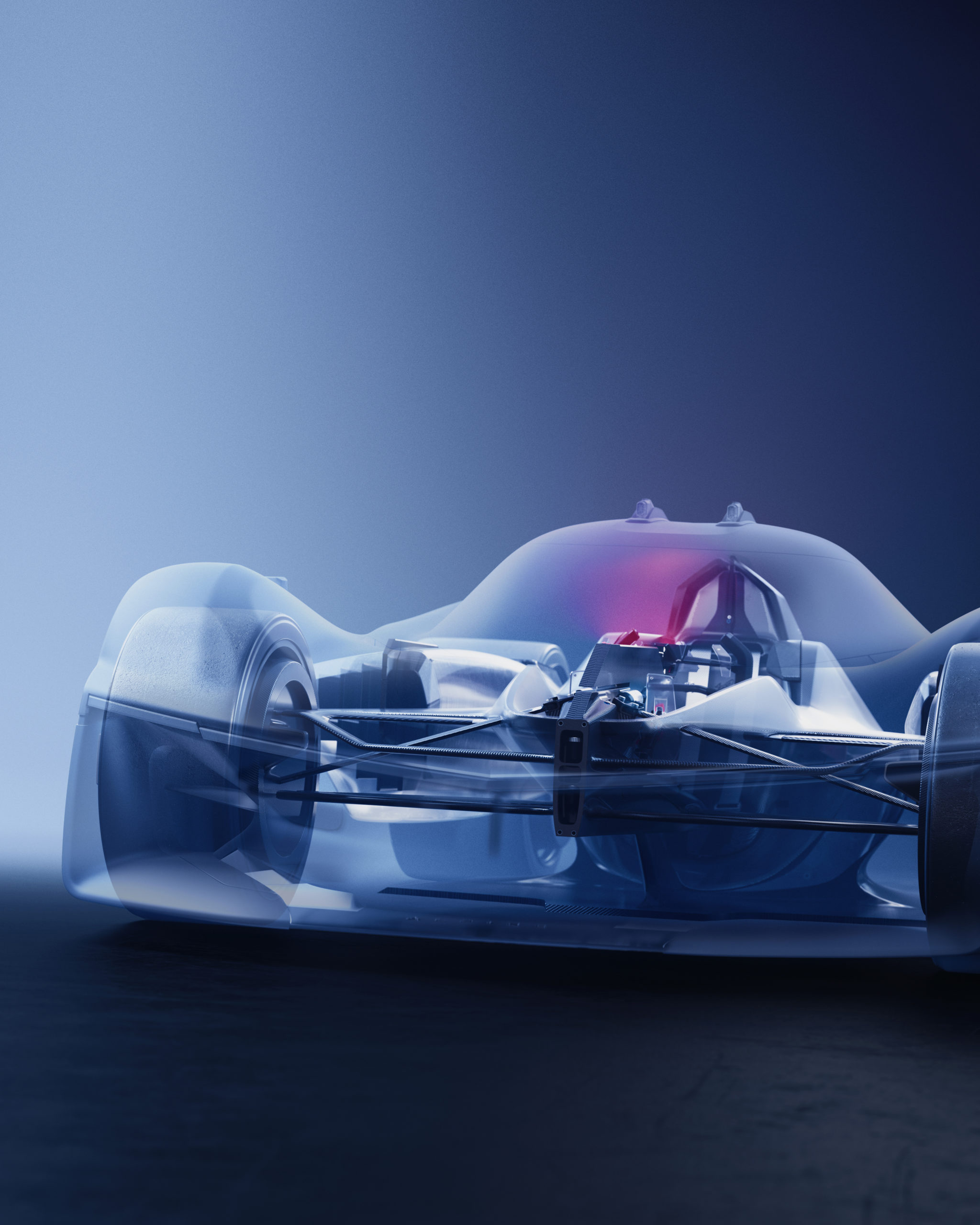 The pedals, paddles on the steering wheel, triangles housing hydrogen, spoiler and part of the engine bonnet are transparent, revealing an ultra-high-tech universe that was out of sight for enthusiasts until now.