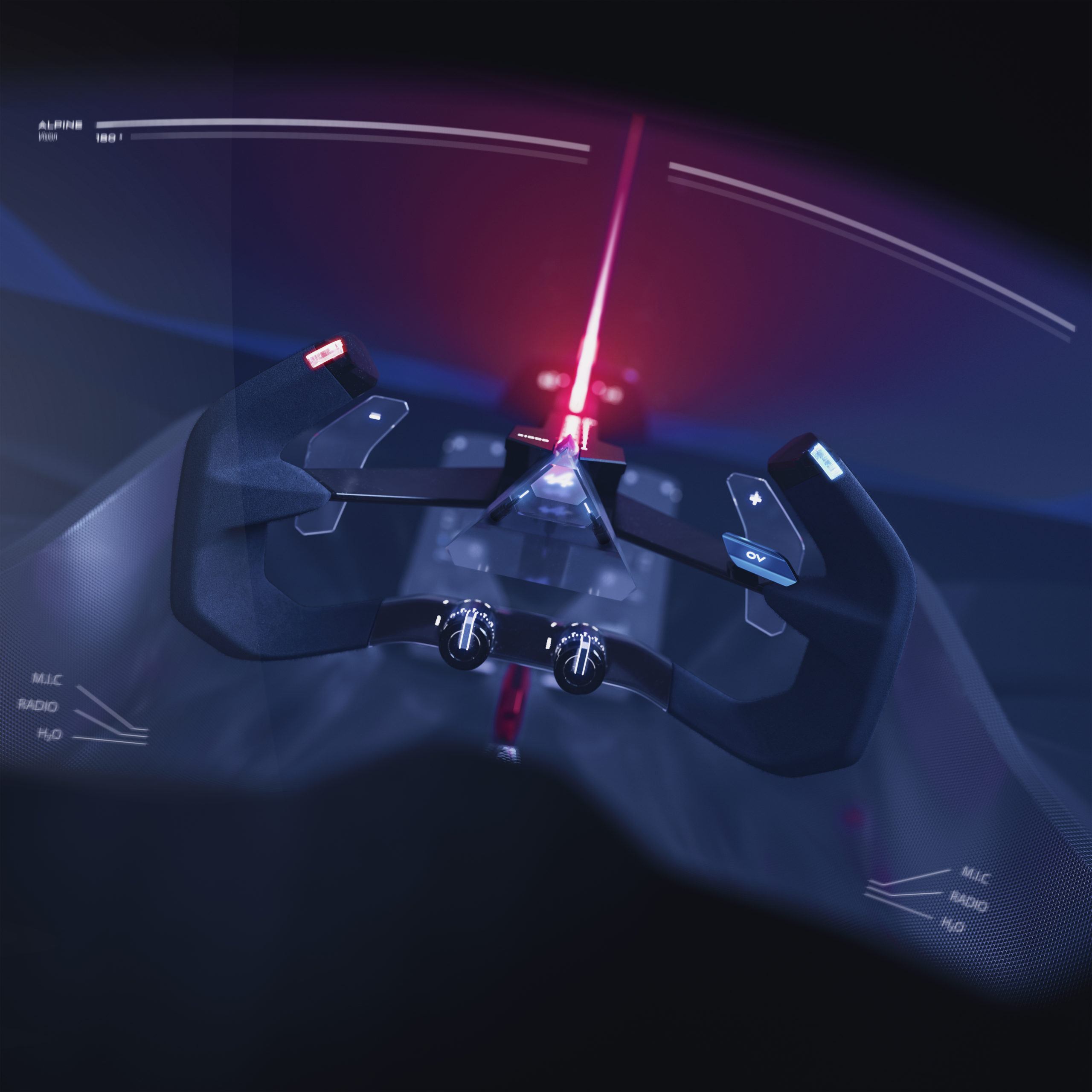 In this single-seater, the driver sits on the centre line, between two hydrogen tanks, and becomes one with the cockpit. This is the idea at the core of the Alpenglow concept car, which captures the very essence of driving, the emotion that sitting in a futuristic Alpine sparks, a full immersion in unspoilt, technical and technological features.