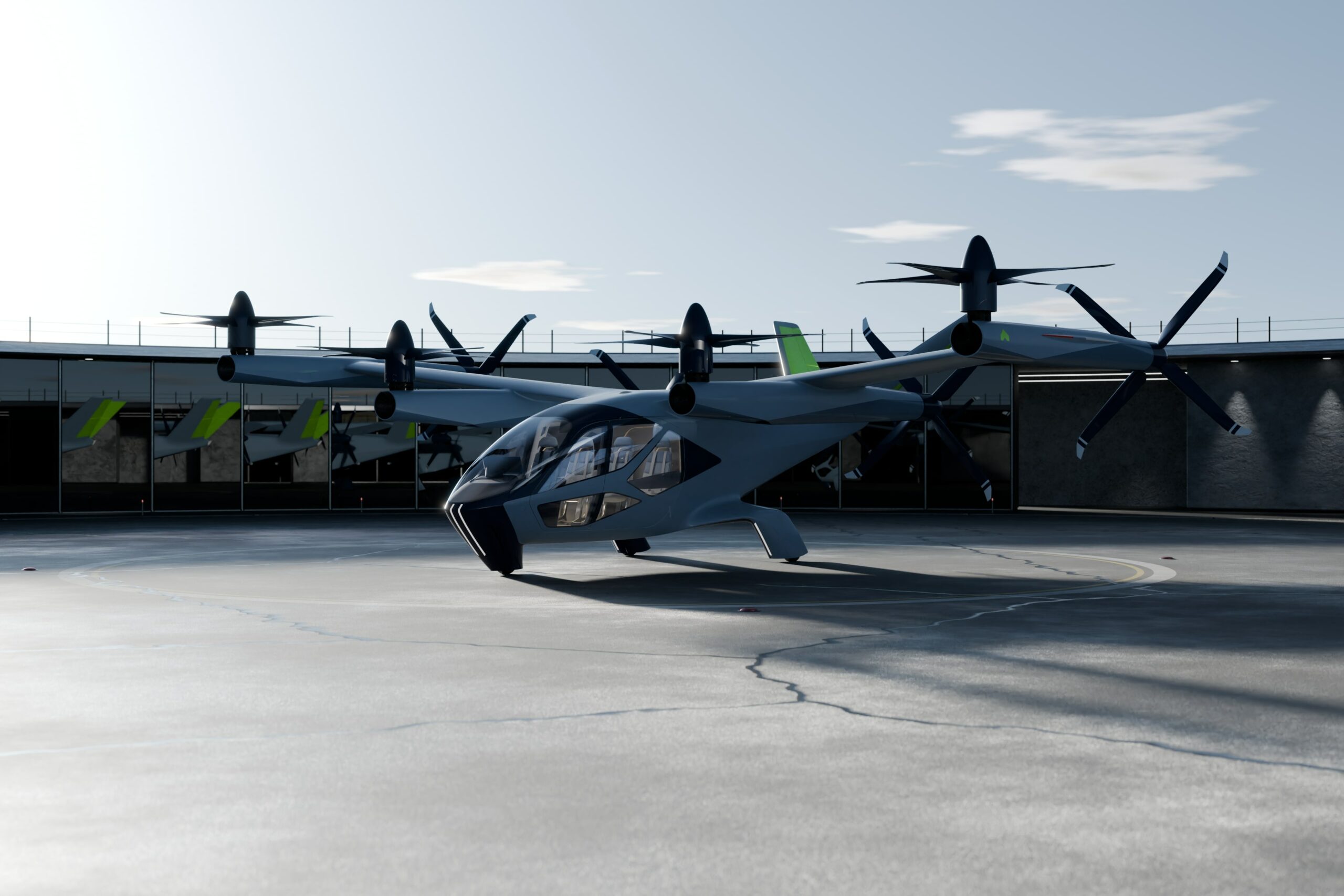 S-A2 is a V-tail aircraft designed to cruise 120 miles-per-hour at a 1,500-foot altitude to meet typical city operation needs of 25- to 40-mile trips, initially. It features a distributed electric propulsion architecture and has eight all-tilting rotors. At entry into service, Supernal’s vehicle will operate as quietly as a dishwasher: 65 dB in vertical take-off and landing phases and 45 dB while cruising horizontally.