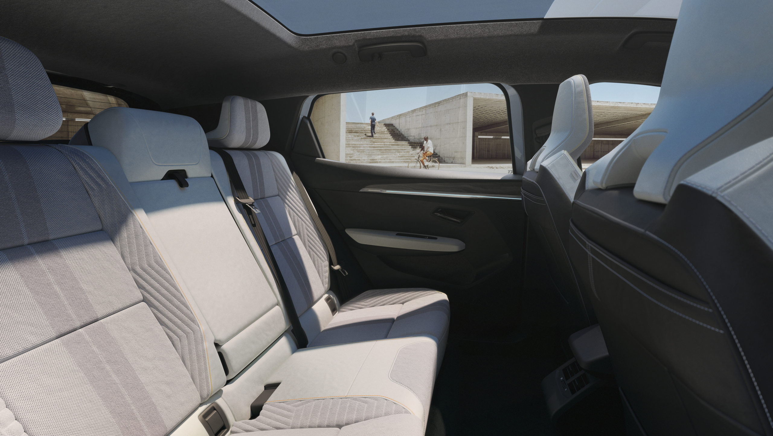 It is built on the CMF-EV platform developed by the Alliance, and its design is bold: its footprint is small relative to the category, but its roominess is record-breaking. It has a compact battery (supplying up to 87 kWh), which frees up even more space inside the car to make the most of its ideal proportions. The motor delivers up to 160 kW (equivalent to 220 hp) so the car is agile, lively and right for every drive. Inside, it is comfortable for all its passengers. Its flat roof and 2.78-metre-long wheelbase make it spacious. So, there is plenty of room for passengers (including a 278 mm knee radius at the back) and for luggage (in its 545-litre boot). The trailblazing Solarbay opacifying glass roof and Ingenious armrest complete the full range of comfort-enhancing amenities.