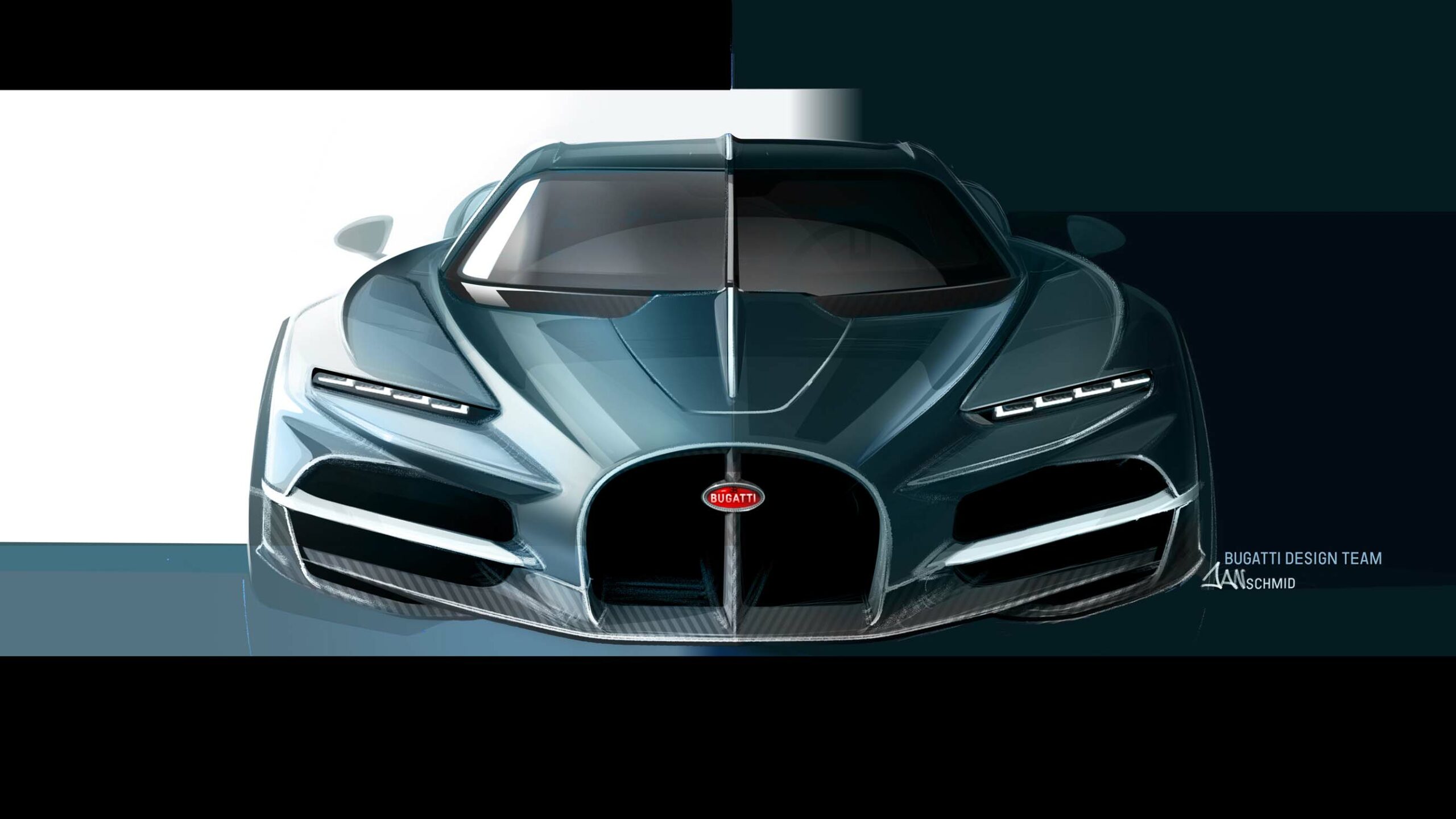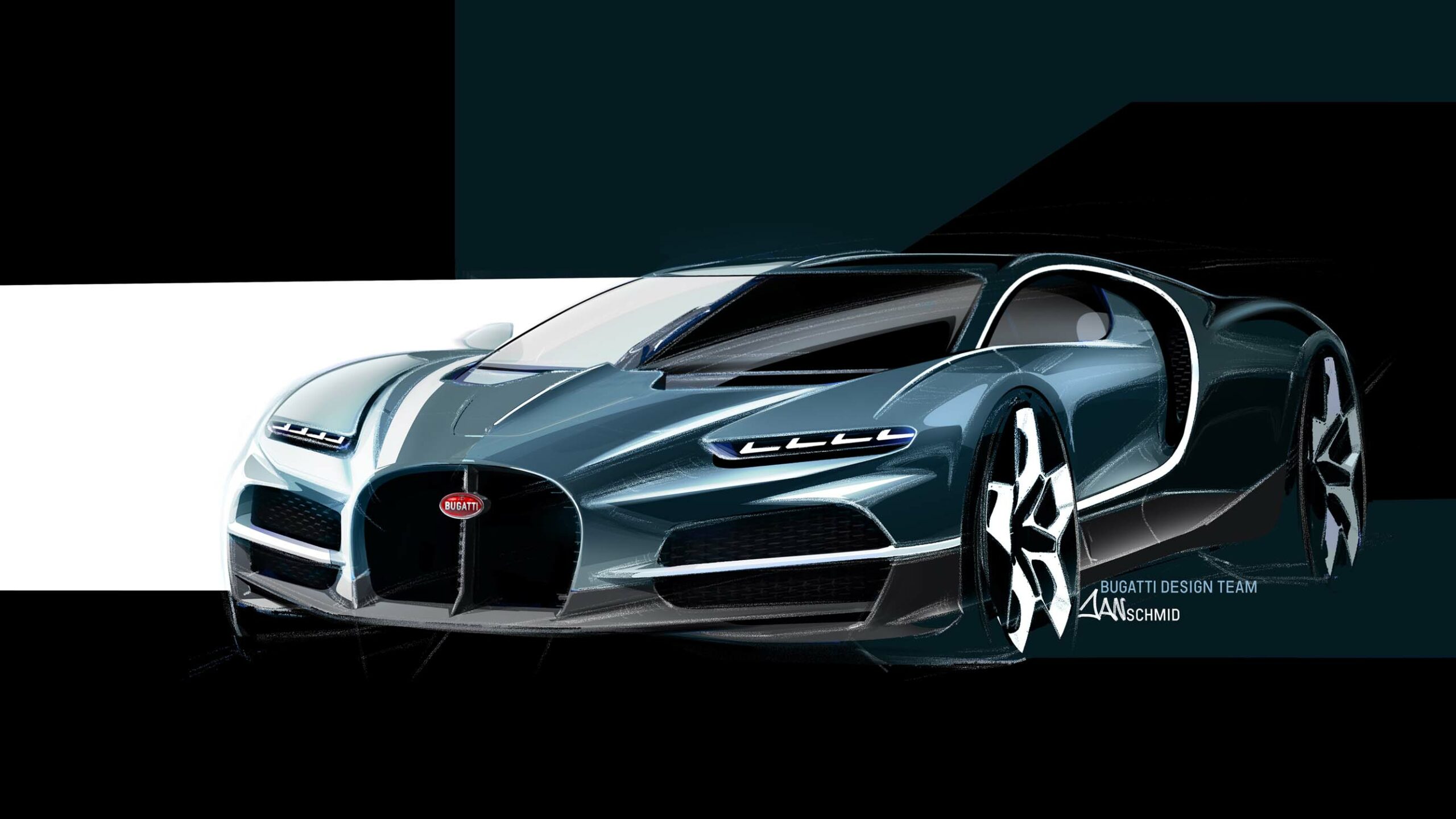 and lowered roofline, the Bugatti line now curves around more sharply, leaning forwards