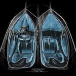 the car originate, shaping the central fuselage volume. Docked onto that left and right are