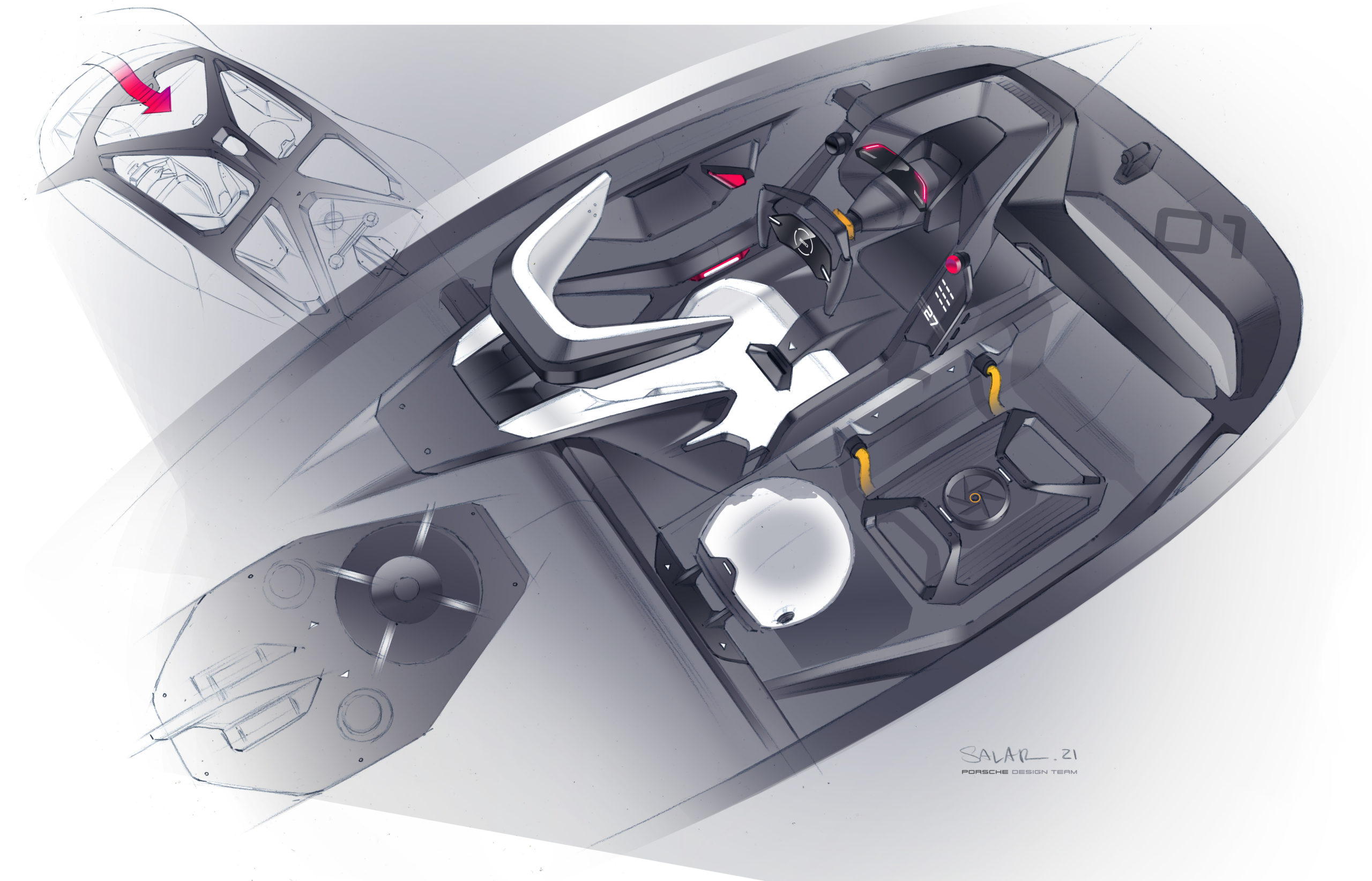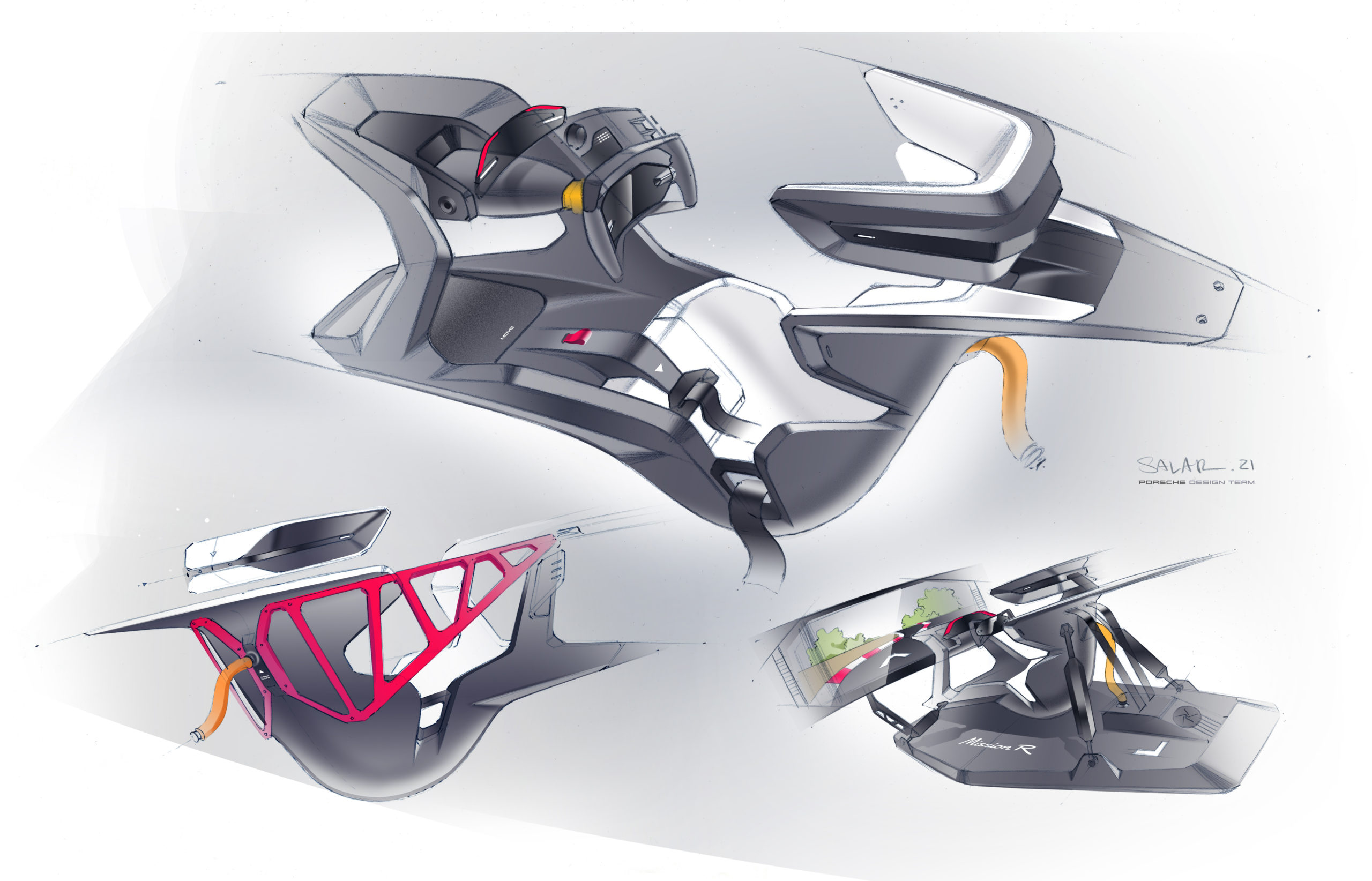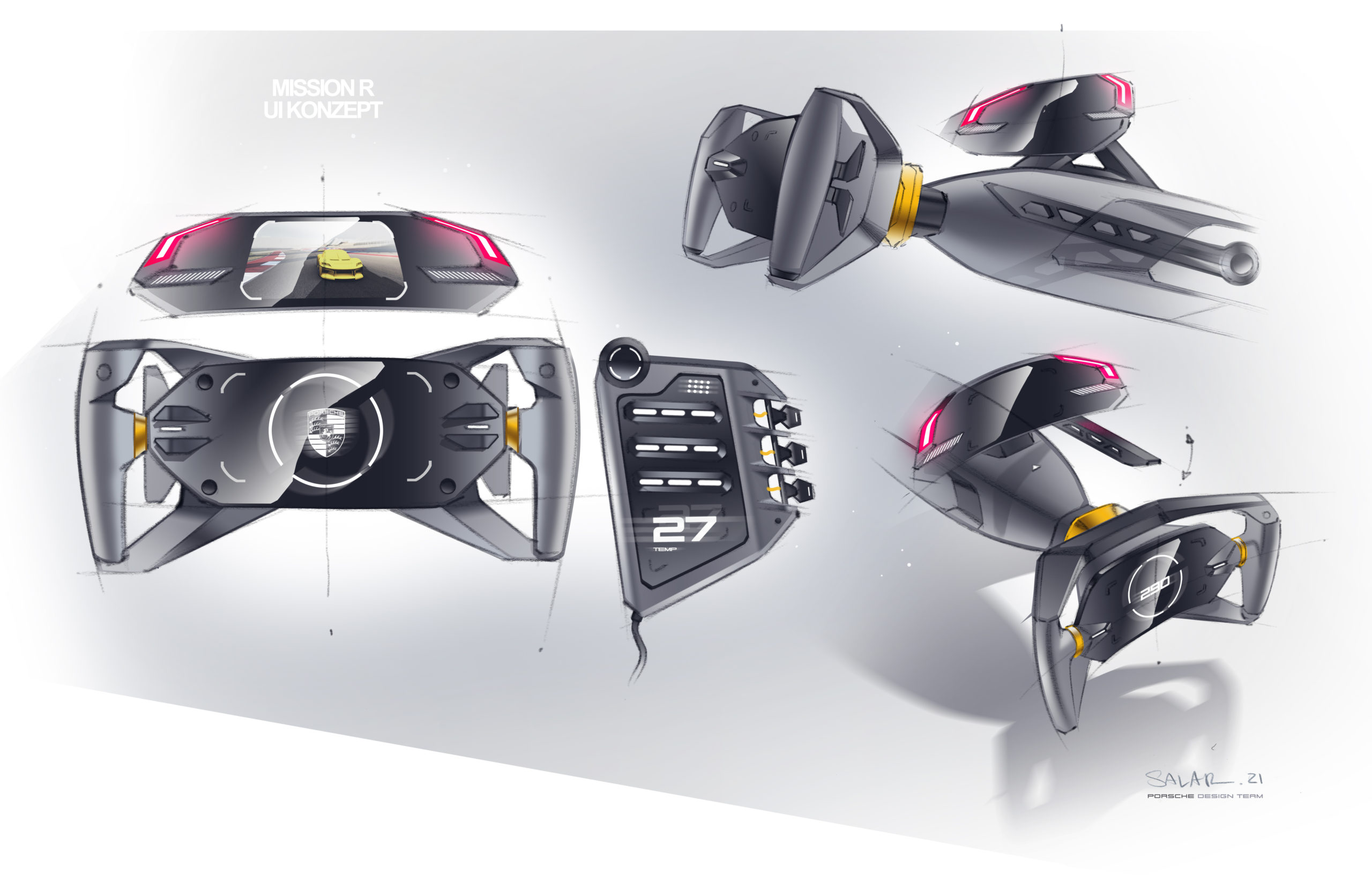 “Every Porsche has to be clearly recognisable as a Porsche. Many elements that we envisage in studies find their way later into production cars. This also applies to motorsports. Moreover, our customer sports vehicles are always based on production sports cars,” explains Michael Mauer, Head of Style Porsche. “What this means in the case of the Mission R is that the car is packed to the gills with signs that hint of a future production model, and that, of course, means: pure racing!“