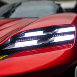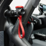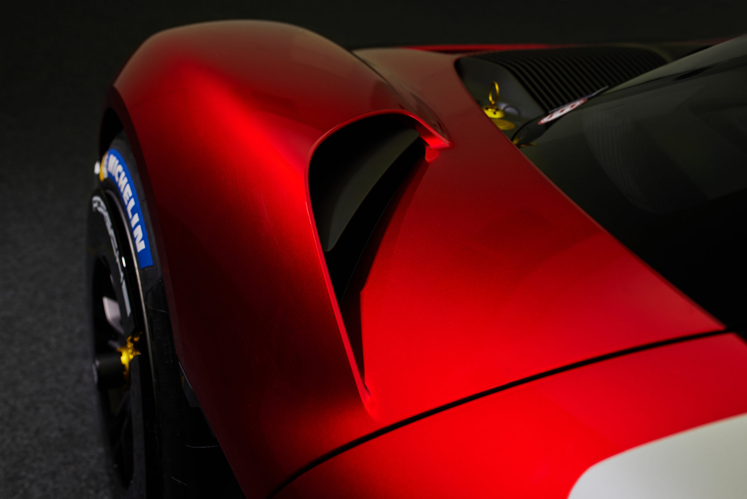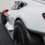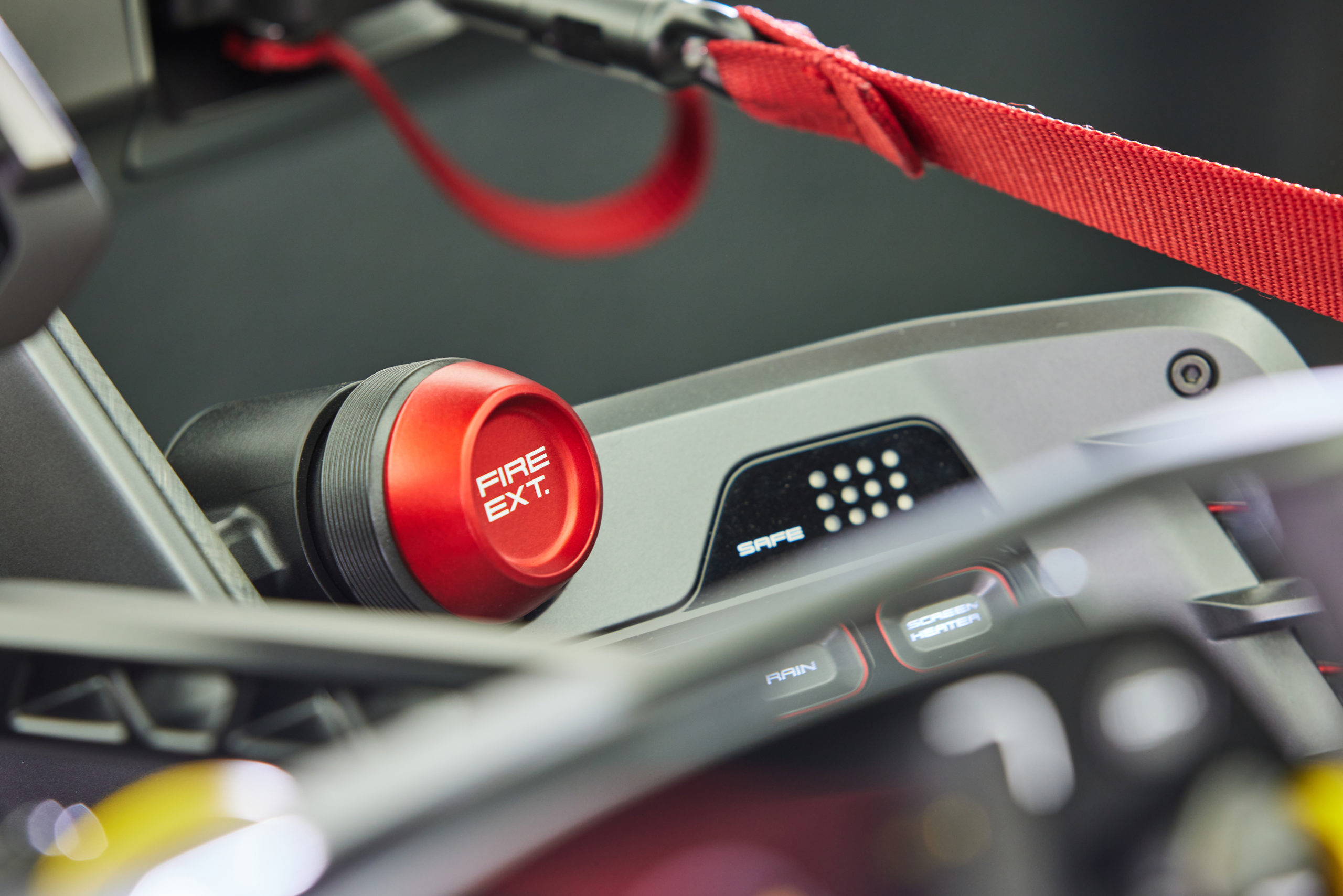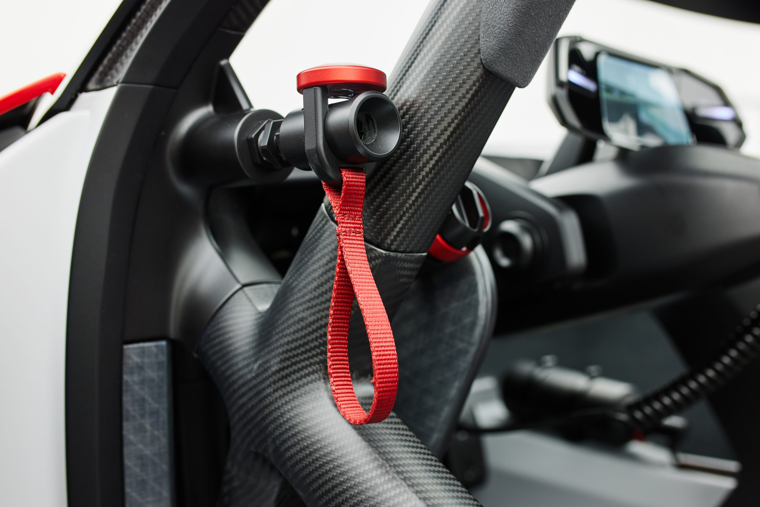 The towing lugs at the rear are highlighted in colour, which is usual practice for racing cars. What makes them special is that they have been seamlessly integrated into the supporting structure of the vehicle.