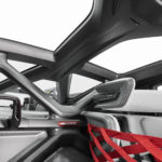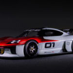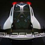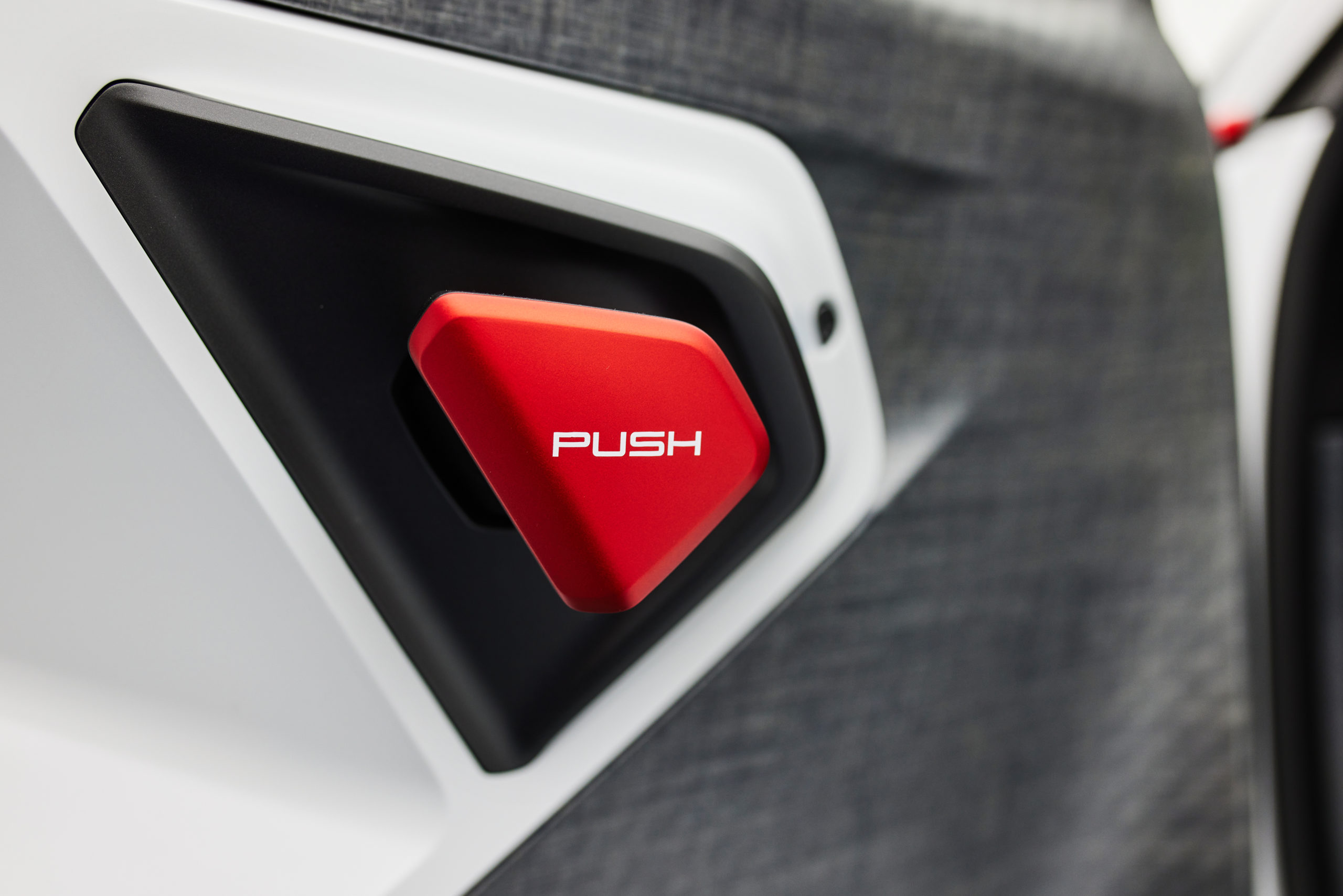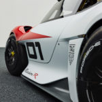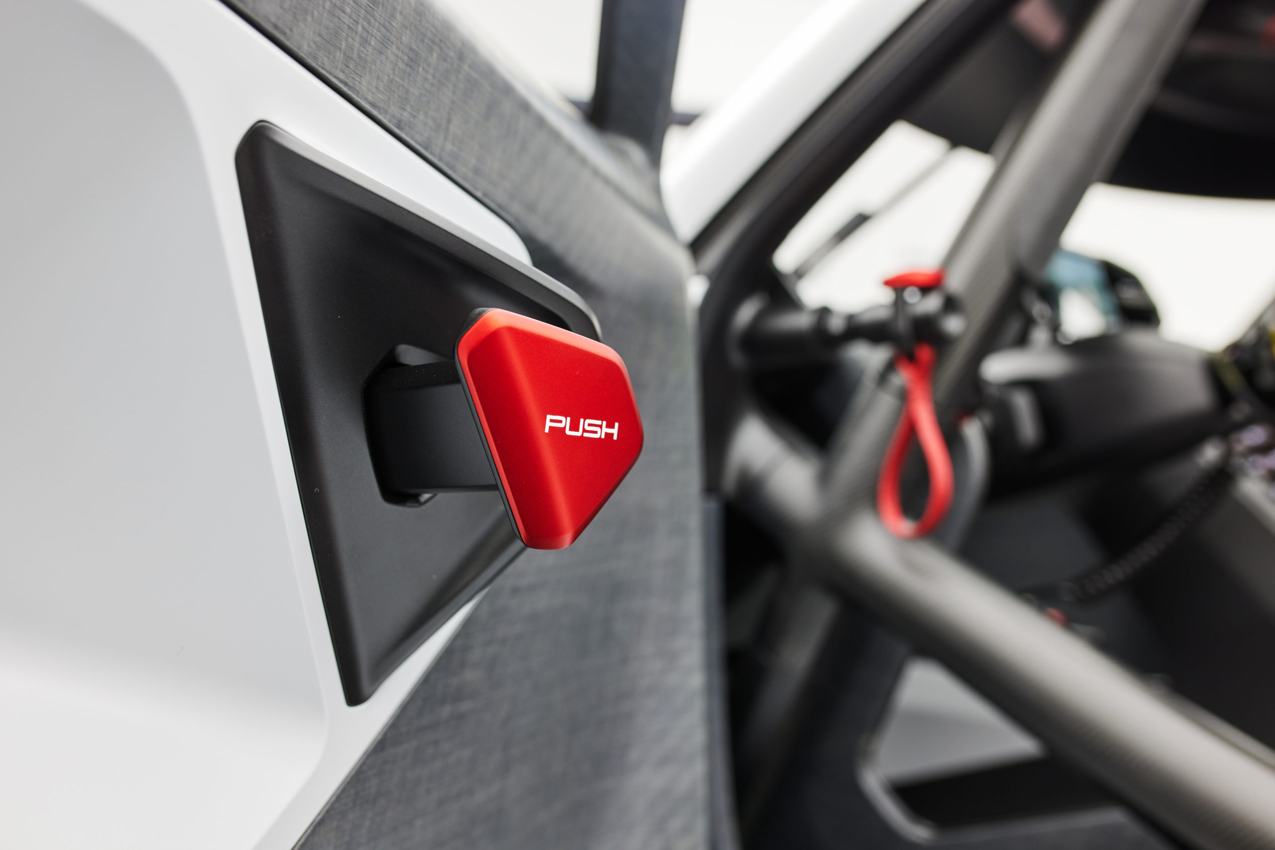 At first glance, the extreme compactness is very apparent: it has a length of 4,326 millimetres and a width of 1,990 millimetres. Typical of racing cars, the electric racer sits very low on the road (height: 1,190 millimetres). The wheelbase: 2,560 millimetres. The narrowly shaped cabin reduces the frontal area of the racing car and contributes to the outstanding e-performance due to the lower air resistance. Cameras are mounted on the edge of the roof as a digital replacement for conventional wing mirrors.
