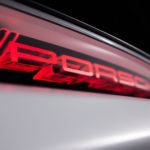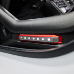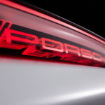 At the rear, there is the typical Porsche light strip. It consists specifically of a large number of illuminated vertical elements to the right and left of the lettering, which also illuminated.