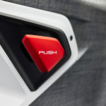 There are panels located in front of and behind the wheel arches. If they become damaged as a result of contact with other vehicles during the race, they can be replaced quickly. Yellow arrows indicate where their quick-release fasteners are located. Other functional parts that must be quickly accessed are identified with yellow arrows, too: they include levers, pins and panels, for example, and the compress air connections for the lifting system located in the C-pillars.
