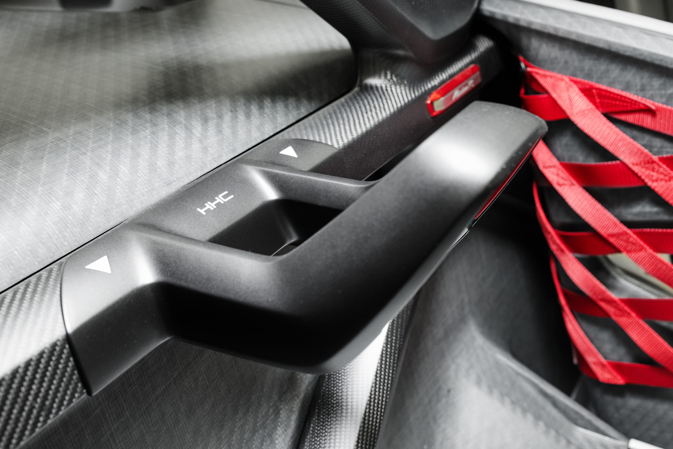 Below the waistline, things get technical and functional: the sills are recessed, which makes the aero underbody even more effective. As is the case with the front splitter and the large diffuser at the rear, the underbody panels are not painted so that the natural fibres are visible.