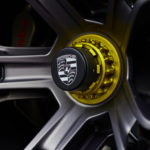 In typical Porsche style, the front bonnet slopes down between the two sharply curved wings. The large side air intakes, each with three louvres, the front splitter with its visible natural fibre mix and the flat LED headlights dominate the nose. The four-point light emblem is based on the design of the headlights on the Taycan electric sports car. Two towing lugs as vertically aligned components link up the front splitter and bumper visually. As functional parts, they are also painted yellow.