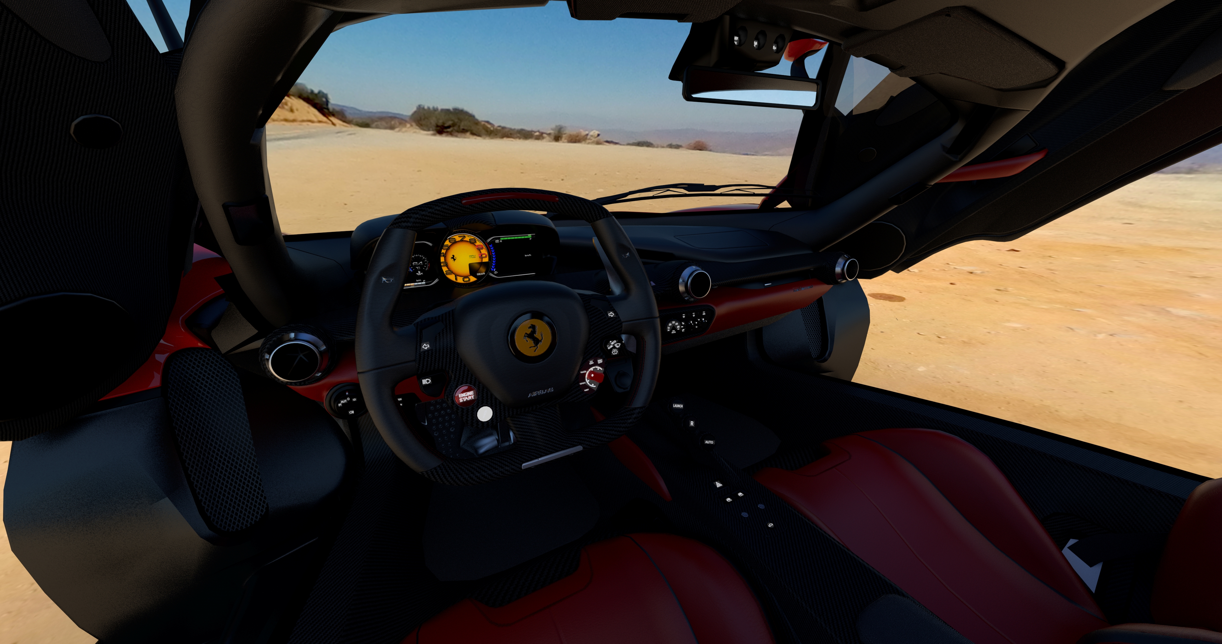 The interior was very well equipped and modern in design. It was a long distance from the essential basics of the old Ferrari’s. This was clearly designed with a keen eye on functionality and form. It looked very pleasing to the eye, not too busy, but admittedly overwhelming at first glance. As said, it fits very snugly, and my arm easily gets in the way of the driver, of course. I think we were no more than 10 cm apart, so that makes sense.