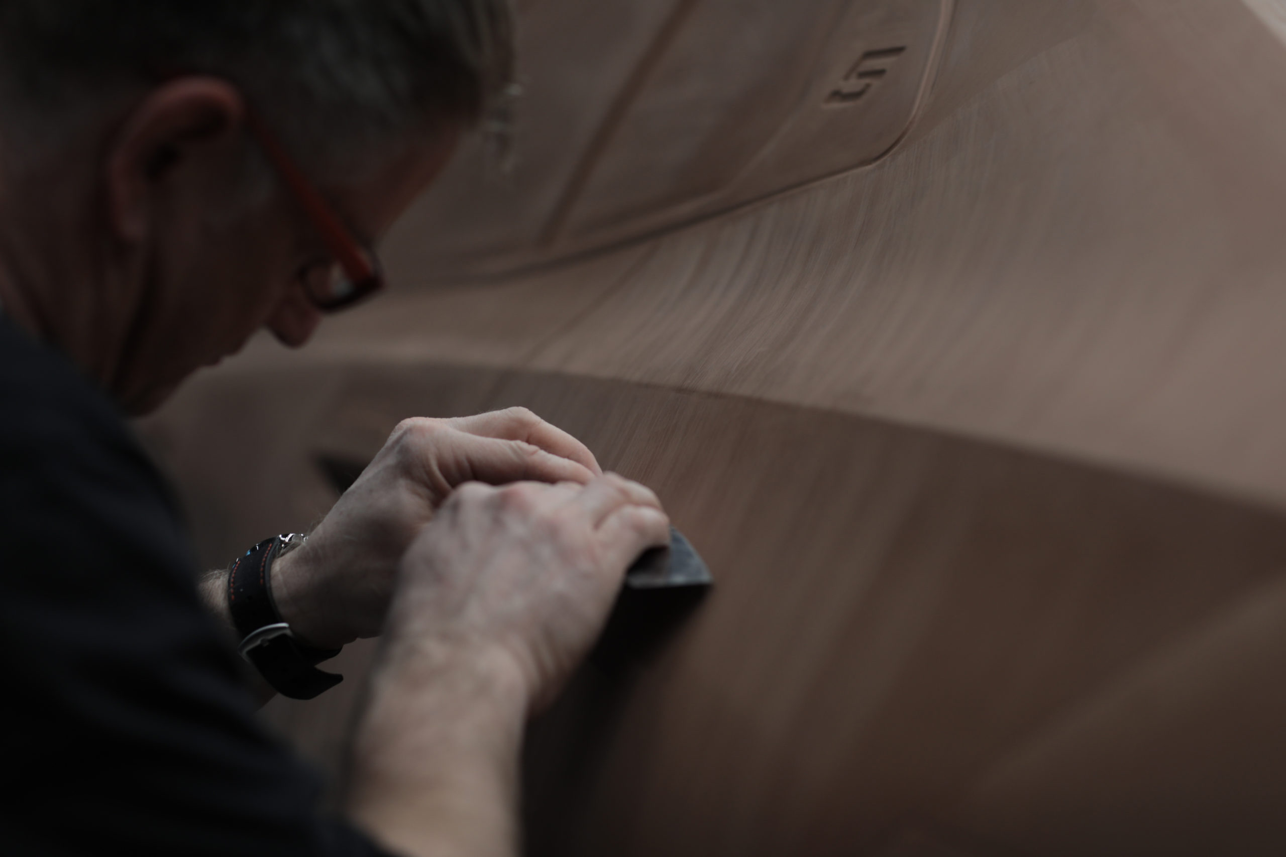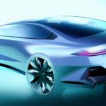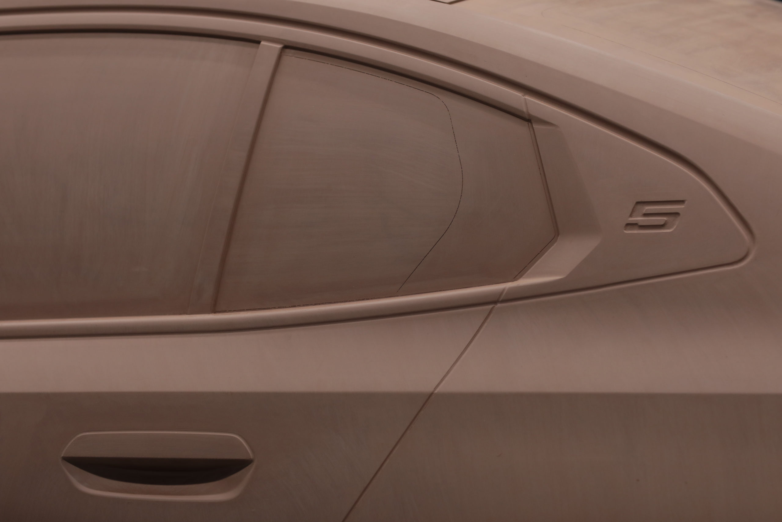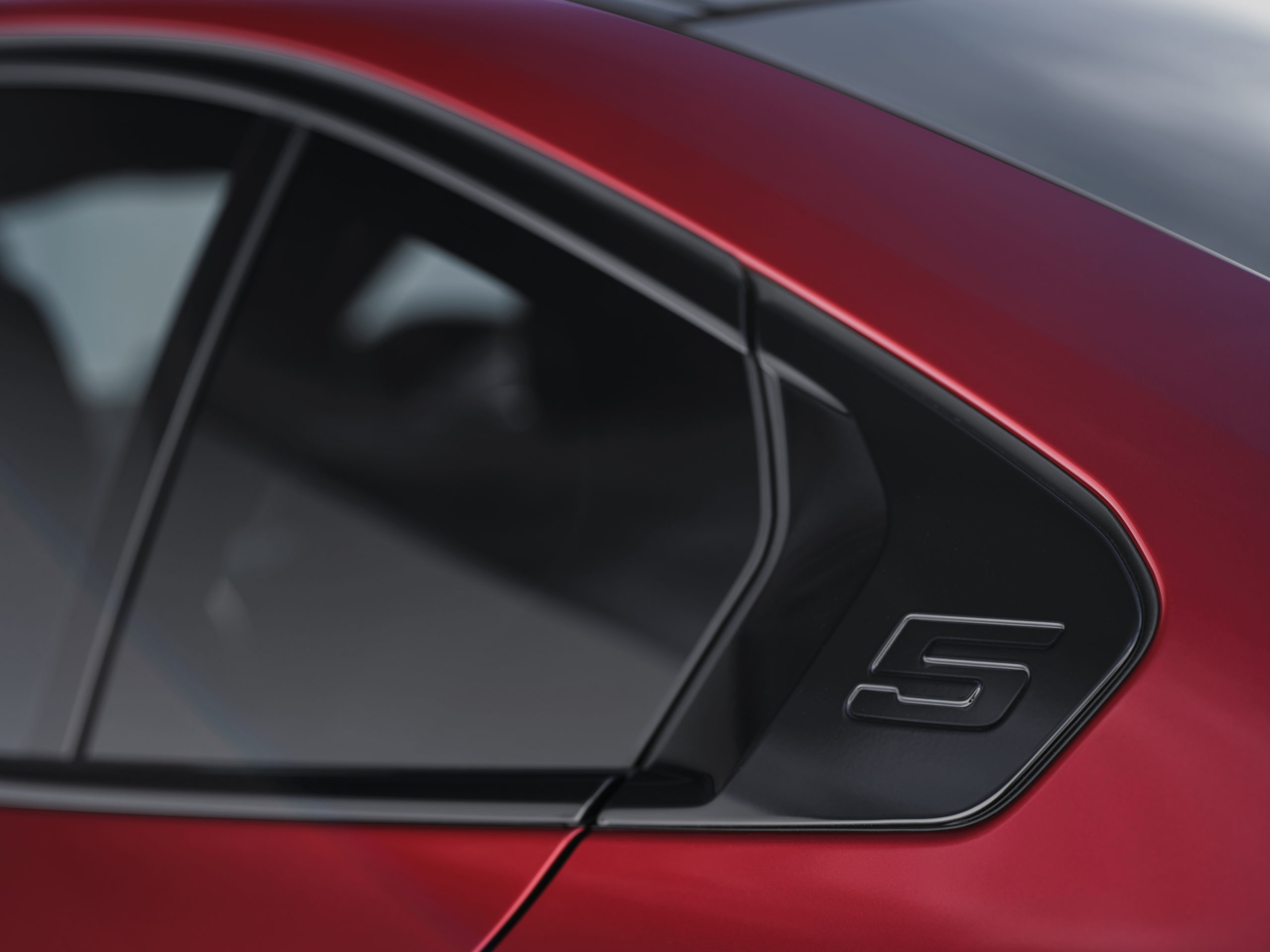 In the side view, the high shoulder line, powerfully designed surfaces and two precisely traced character lines shape the vehicle’s athletic body. Black side skirts, flush-mounted door openers and an embossed number 5 at the base of the C-pillar are further eye-catchers. The dynamically stretched proportions flow into a powerful rear end. Flat rear lights divided by a chrome strip interpret the hallmark L-shape expressively.