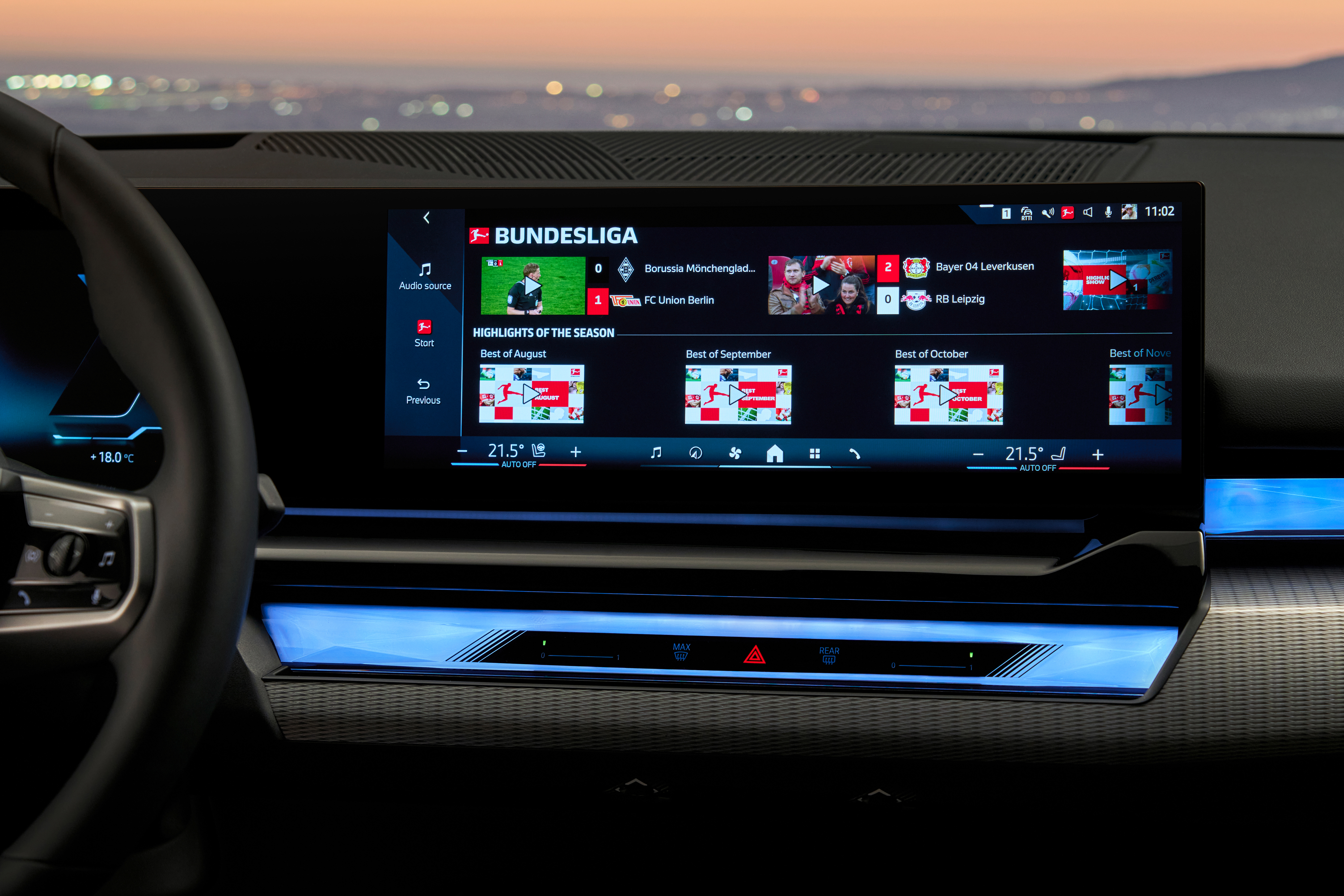 In addition, BMW Operating System 8.5 offers a wider range of digital content for information and entertainment, faster update cycles for functions, improved information on charging points for electric vehicles and optimised access to many specific online services. Video streaming is possible on the Control Display, as is an innovative form of in-car gaming presented for the first time in the new BMW 5 Series Sedan with the AirConsole platform. Driver and passengers can play so-called casual games while the vehicle is stationary, for example to bridge waiting times while charging the high-voltage battery of the BMW i5.