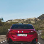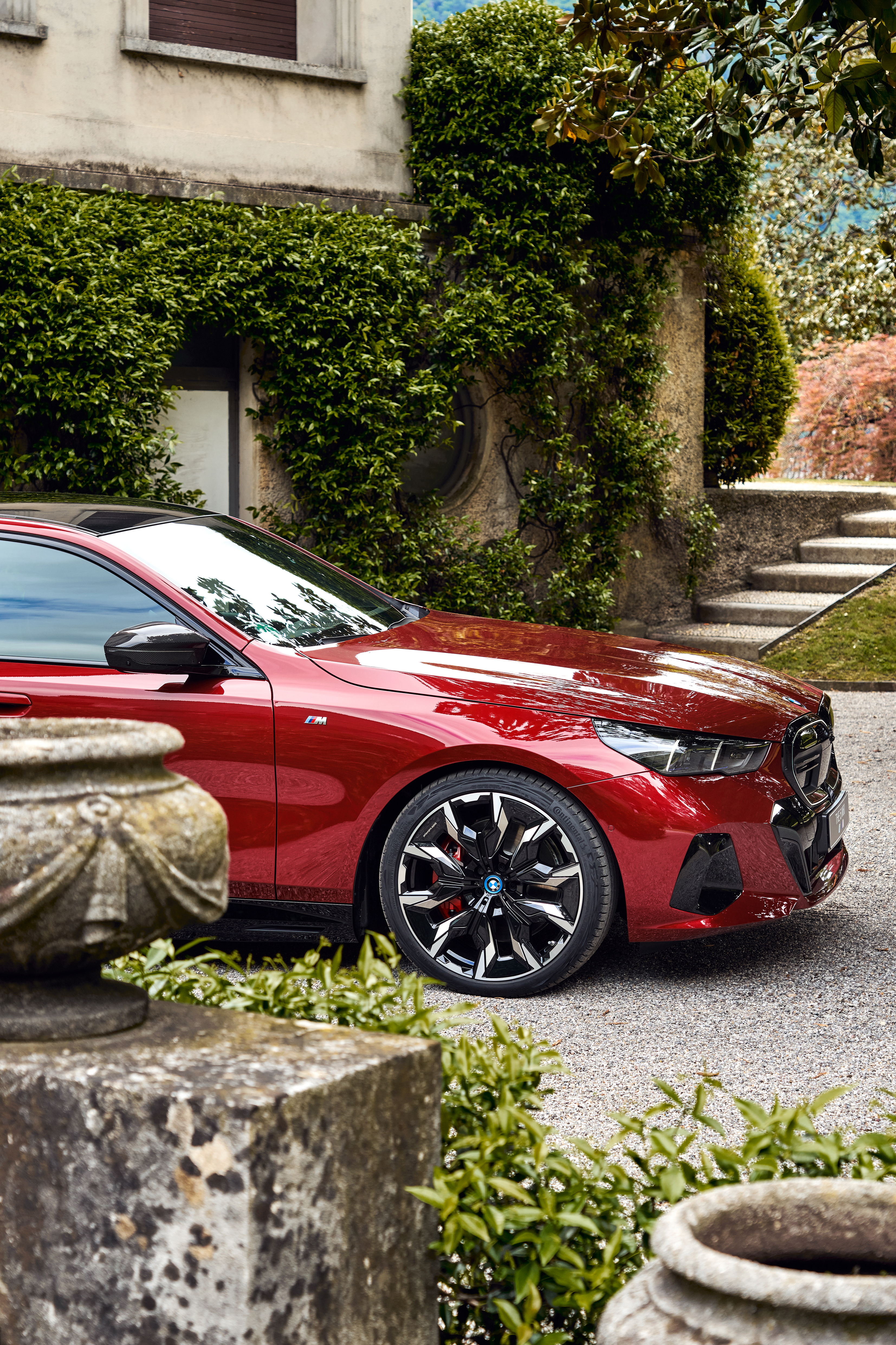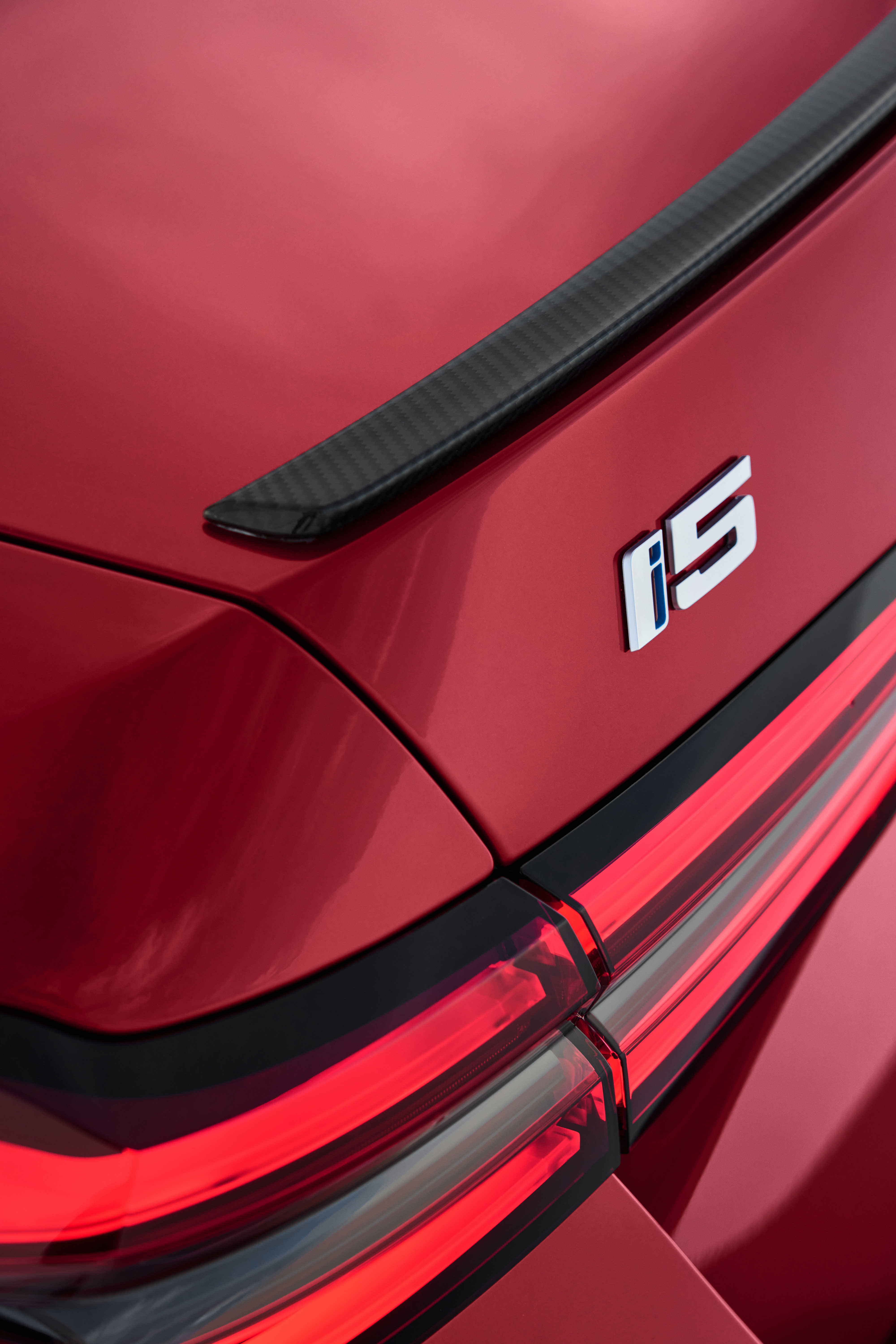 The all-electric BMW i5 is equipped with extensively enhanced fifth-generation BMW eDrive technology and is being launched in two variants. The BMW i5 M60 xDrive (combined power consumption according to WLTP: 20.6 – 18.2 kWh/100 km (62 miles)), which combines an up to 442 kW/601 hp drive with hallmark M performance and specific design features. Two highly integrated drive units on the front and rear axles make up an electric all-wheel drive. The system torque generated is up to 820 Nm (605 lb-ft) when M Sport Boost or the M Launch Control function is activated. This enables the BMW i5 M60 to accelerate from zero to 100 km/h (62 mph) in 3.8 seconds, its top speed is electrically limited to 230 km/h (143 mph).