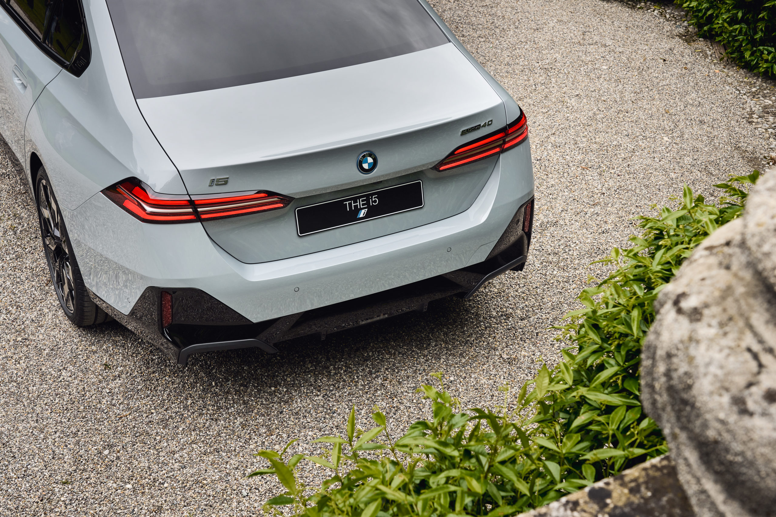 The BMW i5 eDrive40 (combined power consumption according to WLTP: 18.9 – 15.9 kWh/100 km (62 mph)) is also available. Its electric motor drives the rear wheels and generates a maximum output of 250 kW/340 hp and a maximum torque of up to 430 Nm (317 lb-ft) with Sport Boost or Launch Control function. The BMW i5 eDrive40 accelerates from zero to 100 km/h in 6.0 seconds, its top speed is 193 km/h (120 mph).