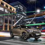If the optional BMW Laserlight with Adaptive LED headlights is specified, a BMW Laserlight spotlight with Selective Beam optimises the non-dazzling high beam function, whose range increases to around 500 metres. BMW Laserlight can be identified by the blue x-shaped elements inside the signature BMW twin headlights. The flanks of the new X6 are defined by familiar BMW proportions, a crisply drawn character line and the dynamic roofline. 19-inch light-alloy wheels are fitted as standard, with other wheel variants ranging in size from 20 to 22 inches available as an option. The BMW X6 M50i and BMW X6 M50d come with 21-inch light-alloy wheels as standard.