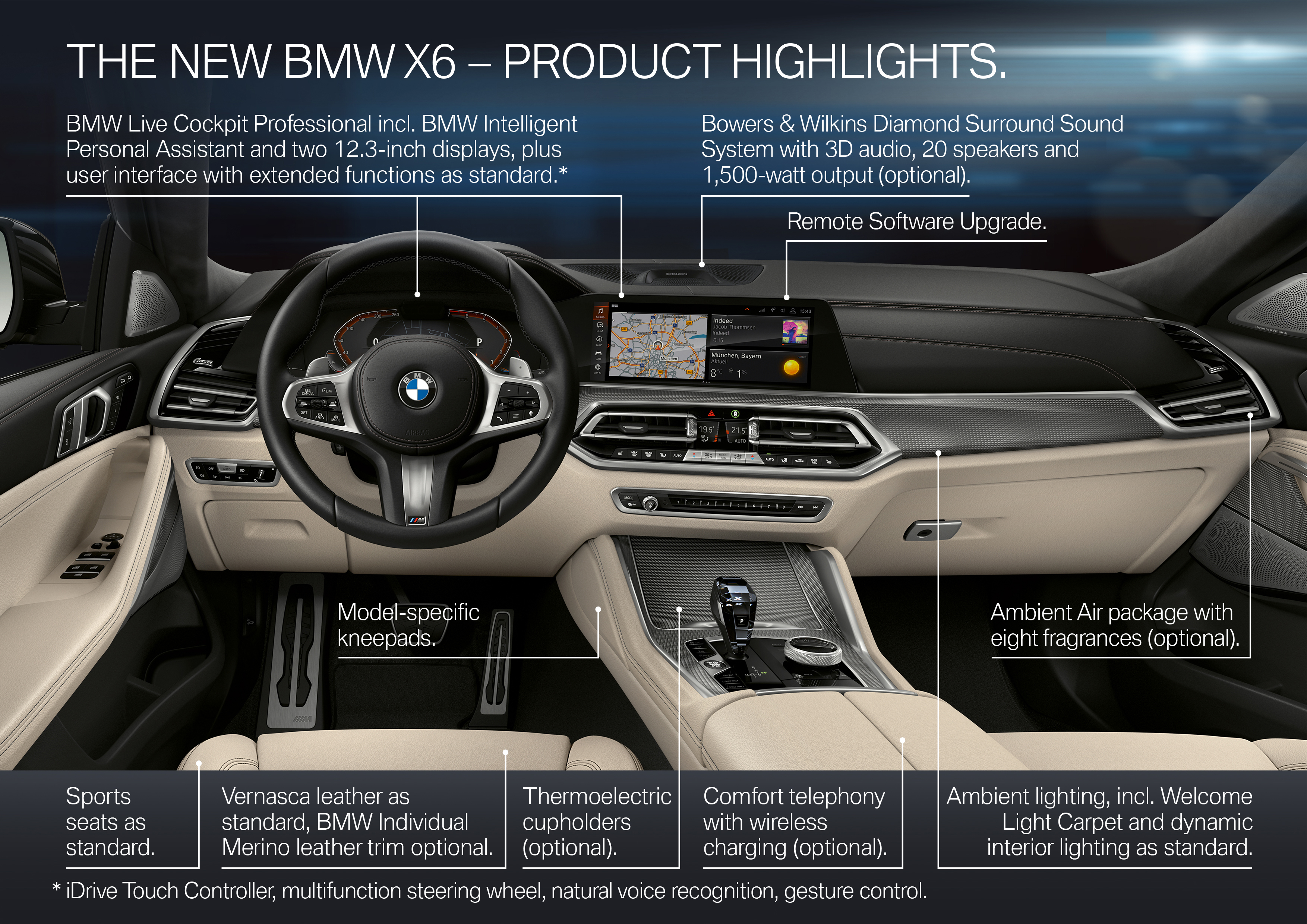 The BMW Live Cockpit Professional in the new BMW X6 combines a