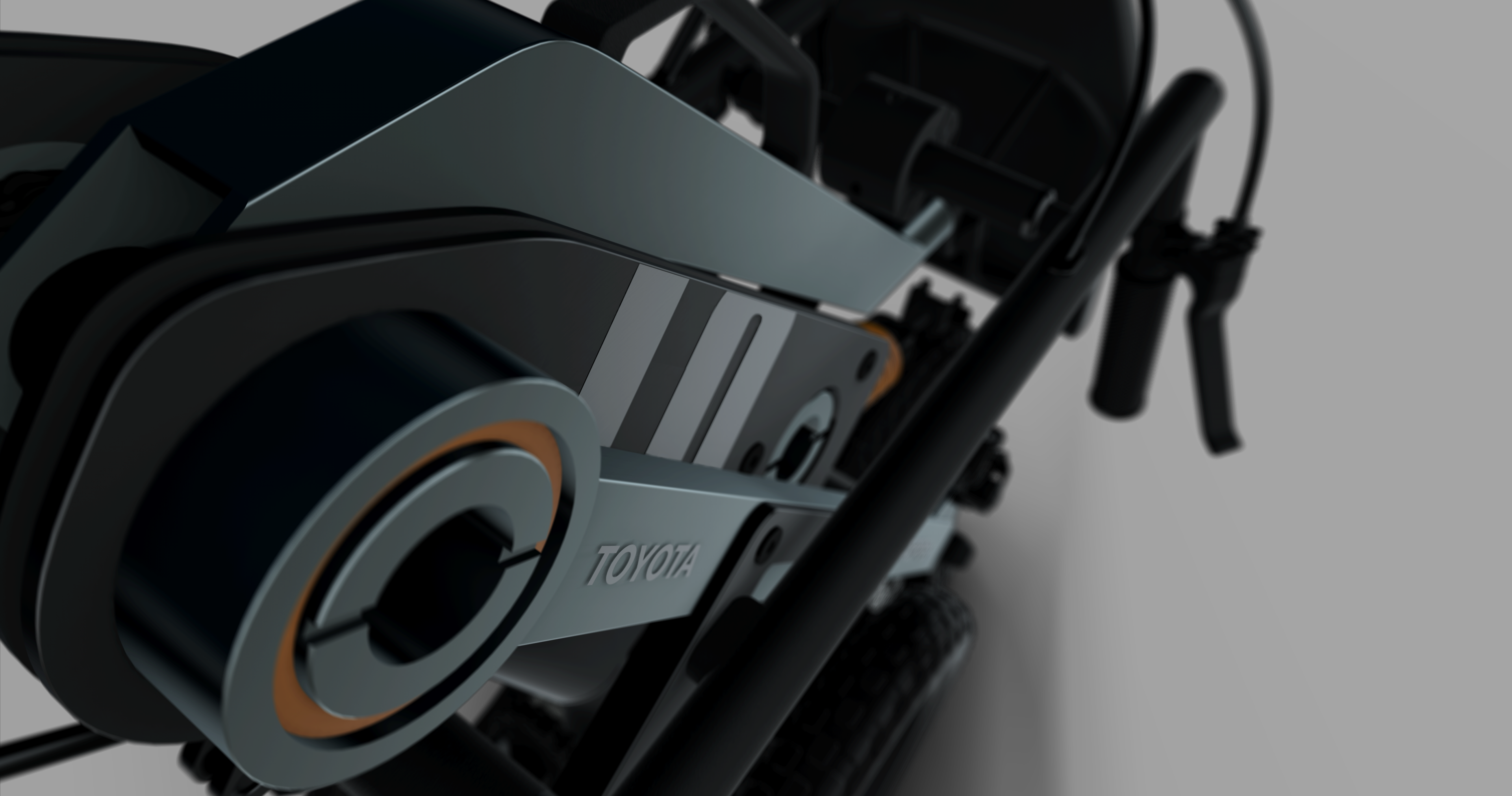 A new cockpit concept based on motorcycle handlebars, integrating the functions of the accelerator and brake pedals into the steering wheel.