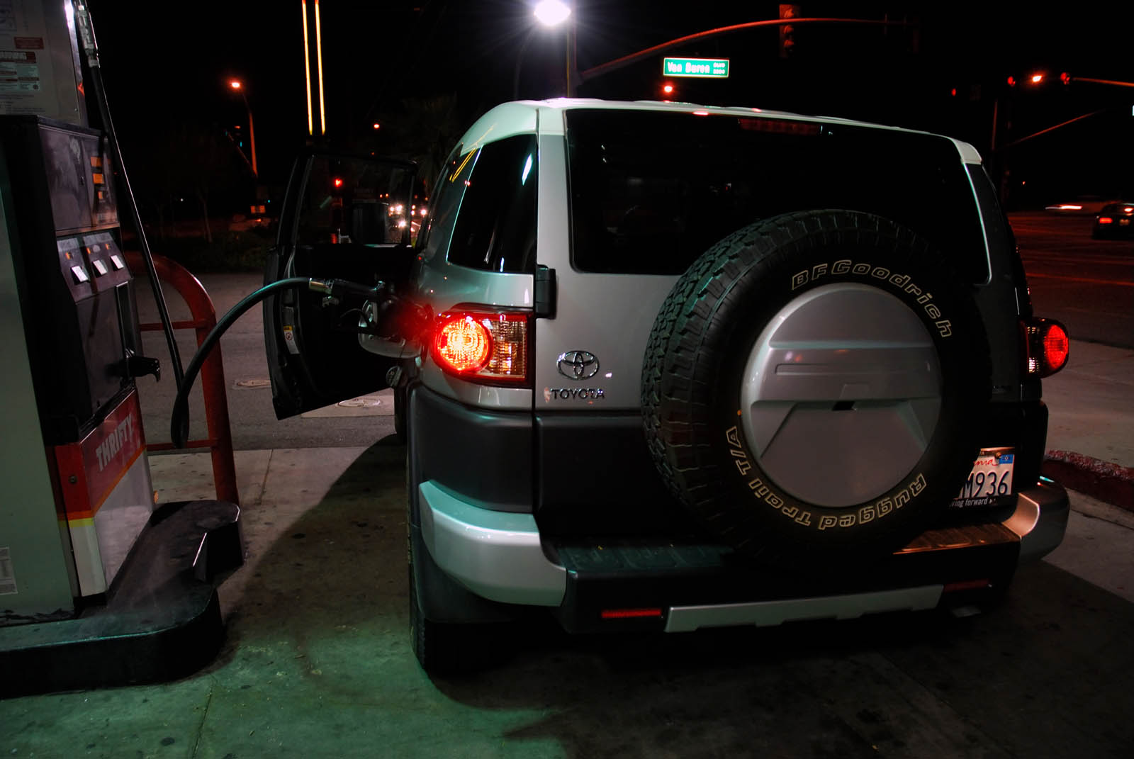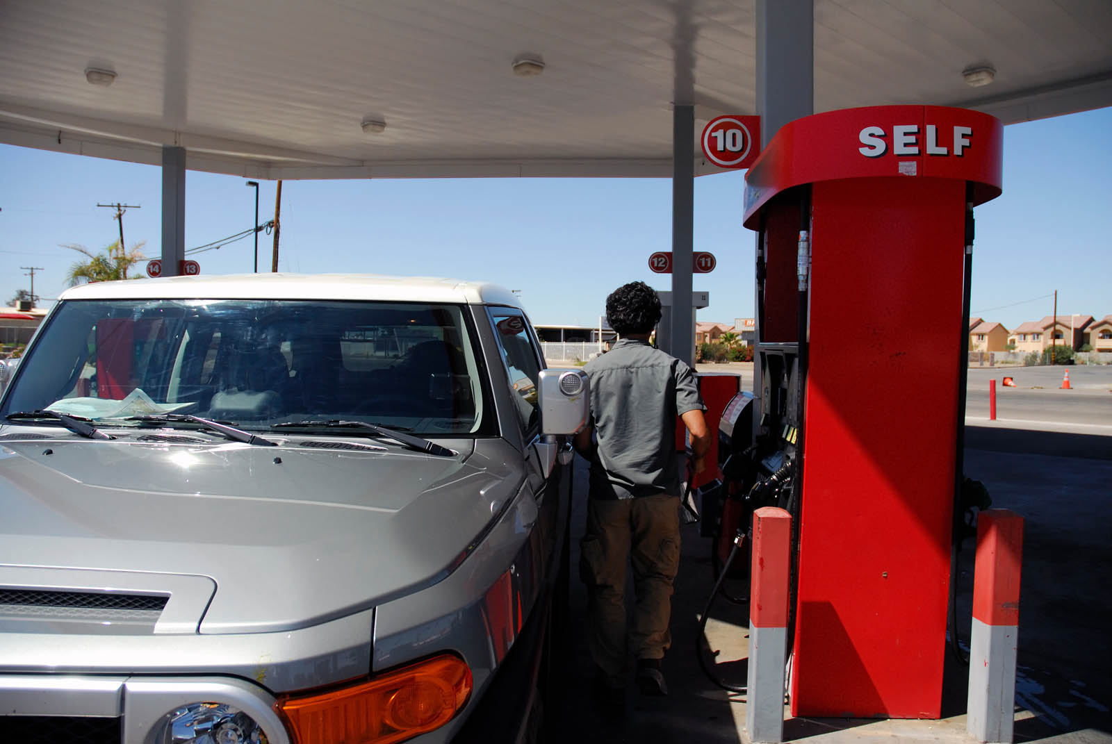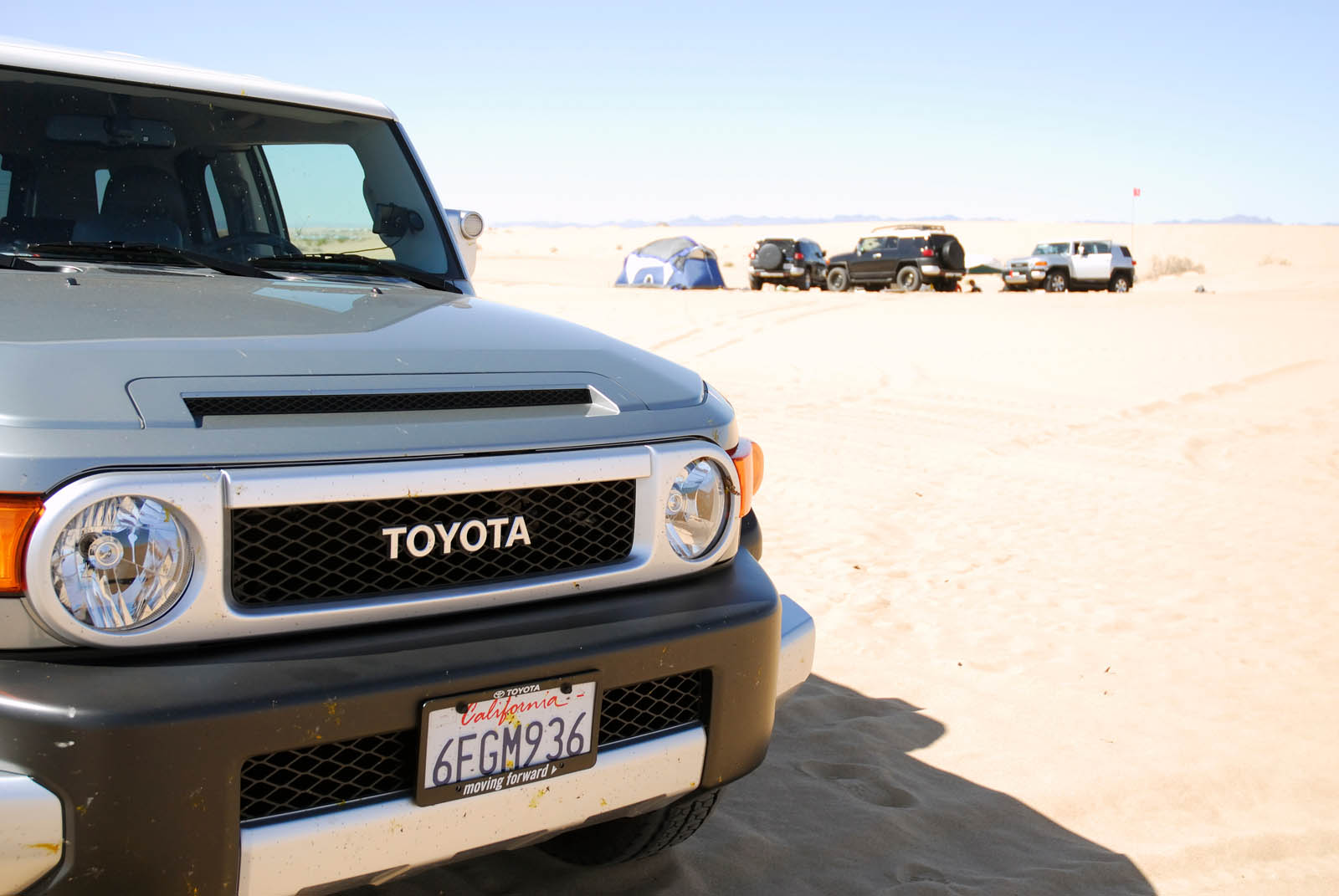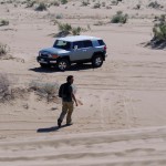 We didn’t want to scrape rocks with our test vehicle, so we decided to scrape sand instead. We drove all the way to Glamis sand dunes for our test. We didn’t think it would get that dirty before the desert, but there was plenty of bug carnage along the way. There was about a 200 mile trip ahead of us to get to the desert. We burned up a bit of gas driving hilly roads to our destination. Fuel stops were to be expected, especially filling up before there were no station is sight. We had a lot if fun kicking up sand in the desert, once switching to 4WD mode. The FJ felt right at home maneuvering through the desert sand. We even found some fellow FJ cruisers during our trip. After that, we ventured to the Salton Sea. Once again, the ride was smooth and comfortable on road. After a long drive back and fueling up, we decided to fuel ourselves up.