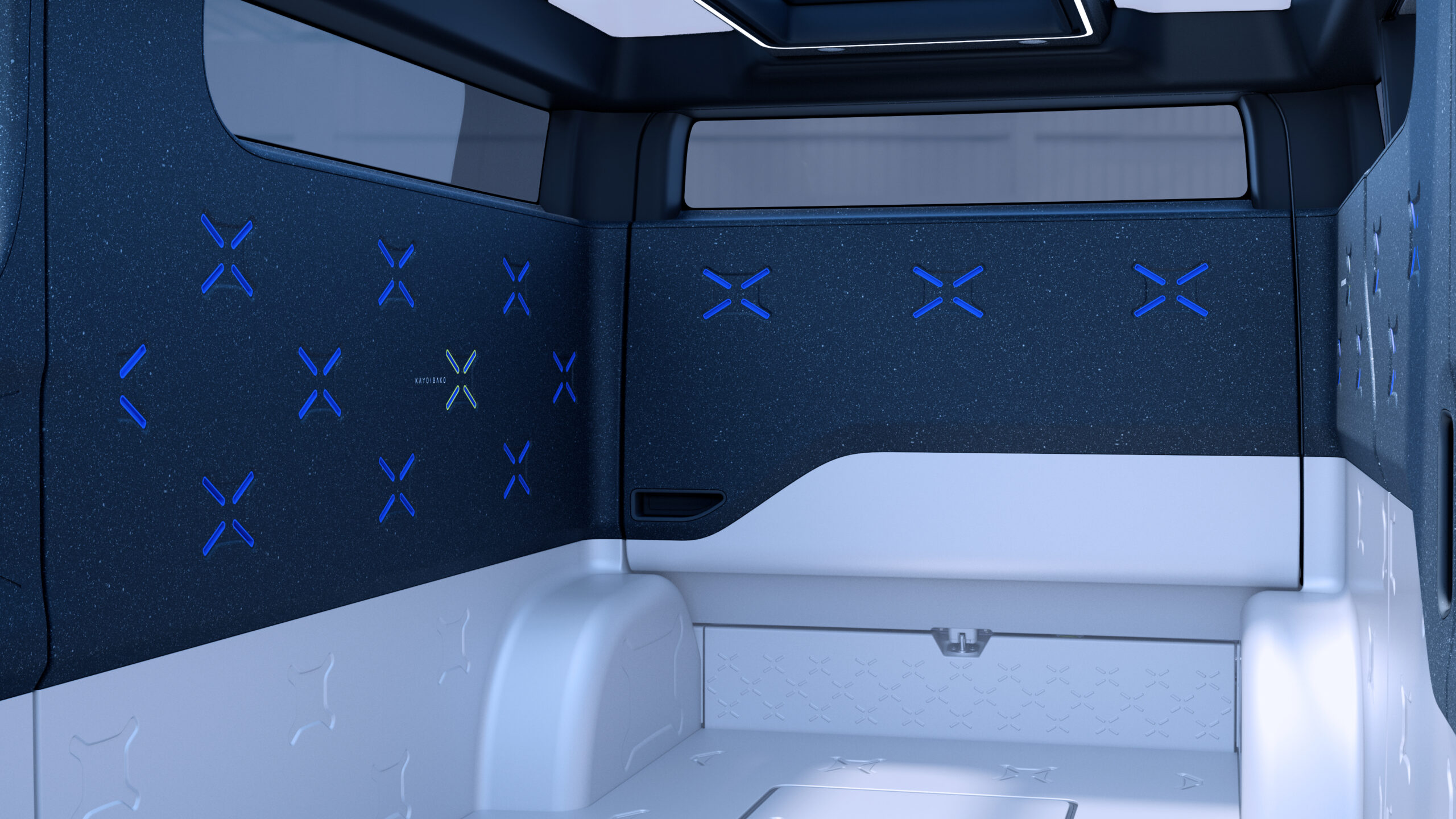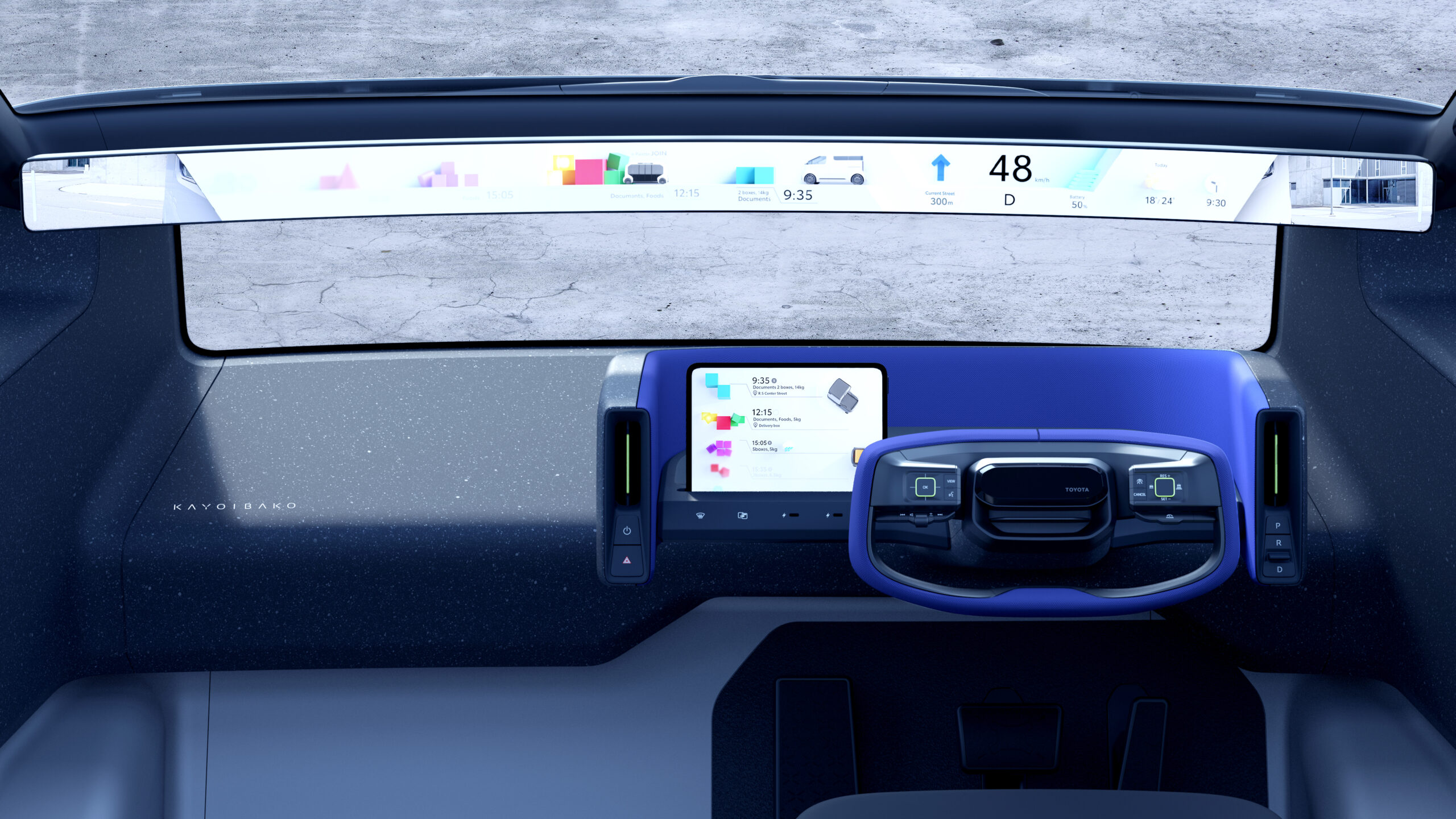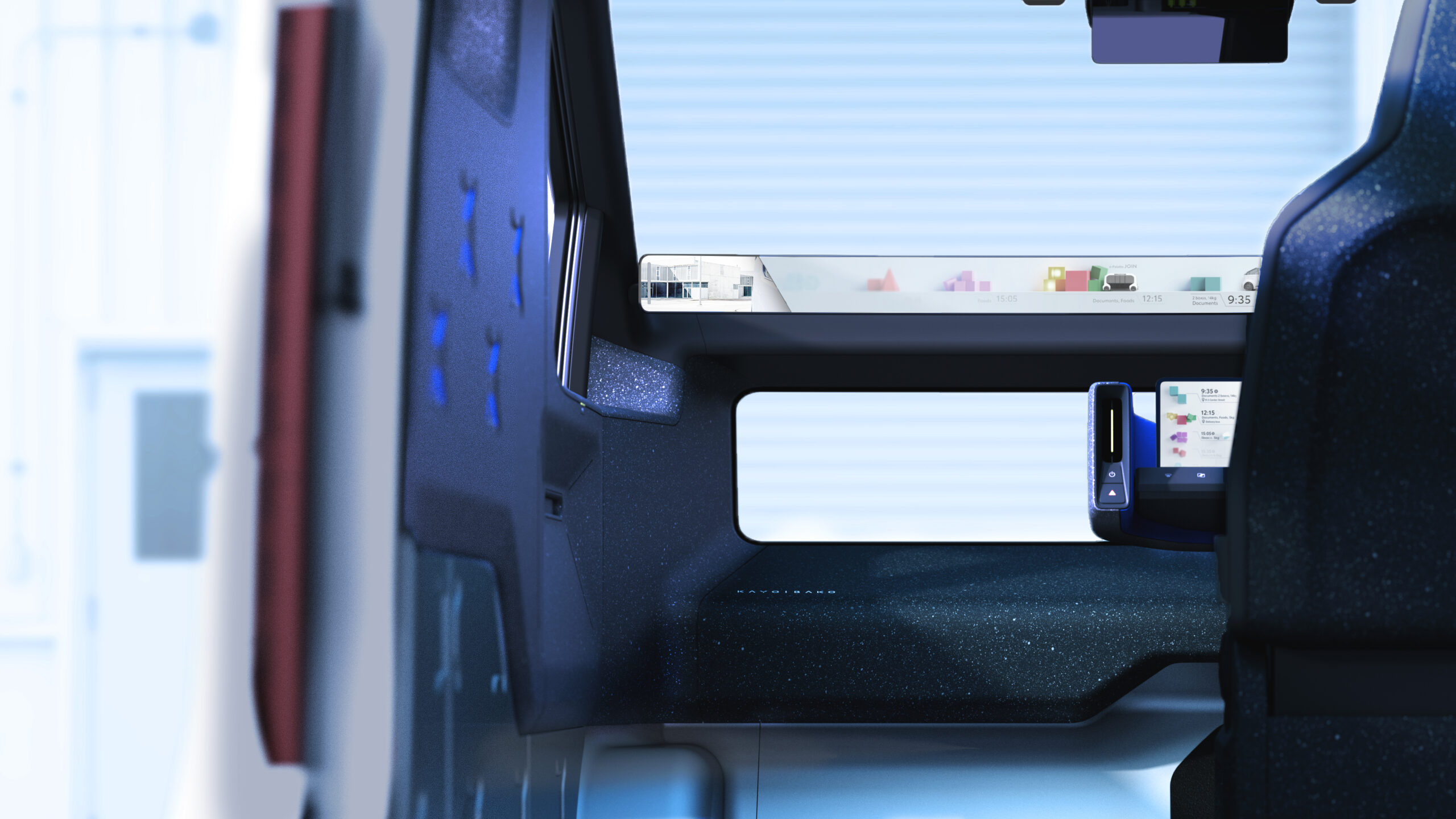 The word kayoibako refers to configurable shipping containers for safely and efficiently transporting parts and products between facilities, sized to eliminate waste and able to meet diverse needs with changeable inserts. Adopting this approach, the KAYOIBAKO is a new compact space concept that represents the future of mobility.