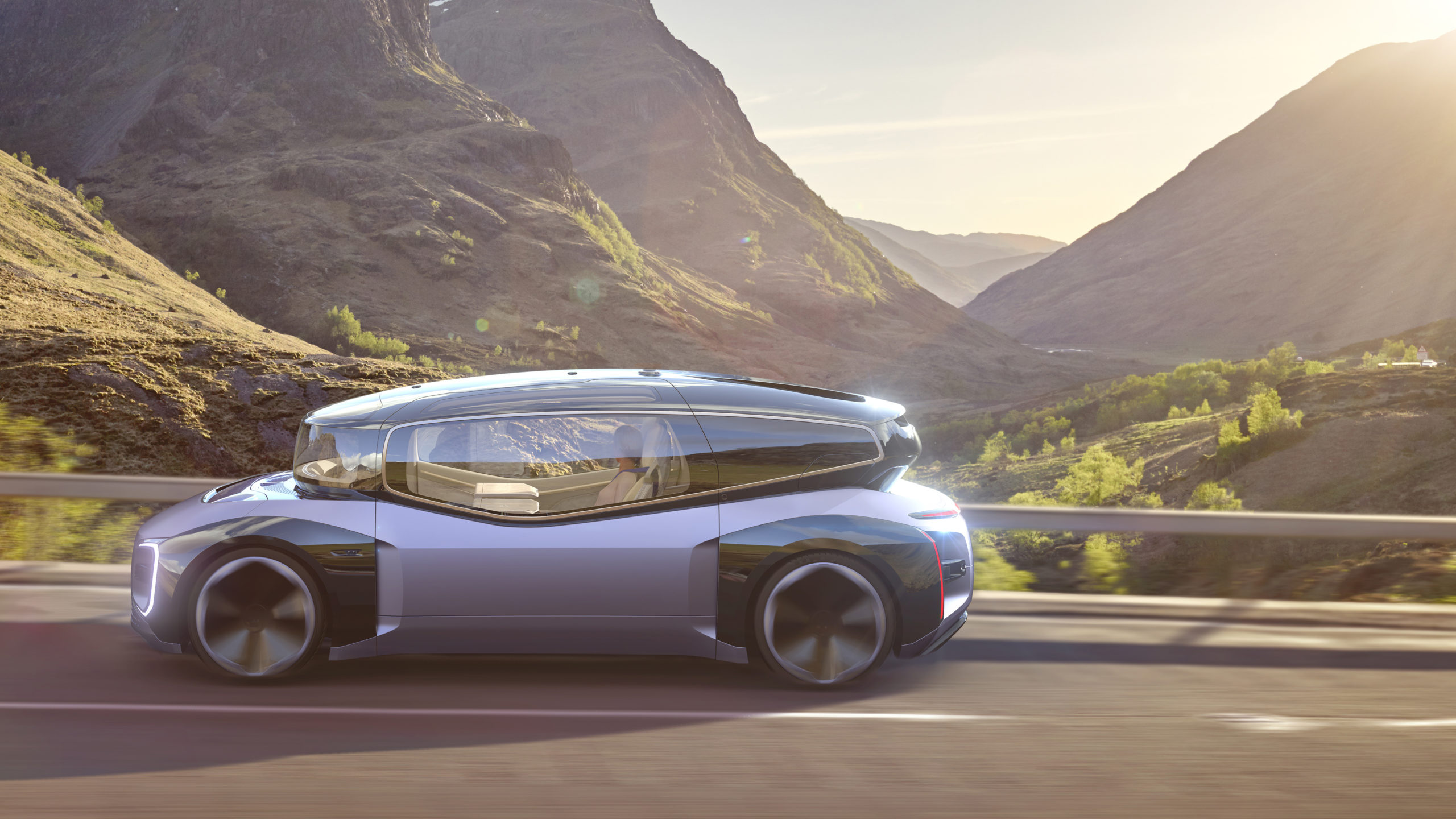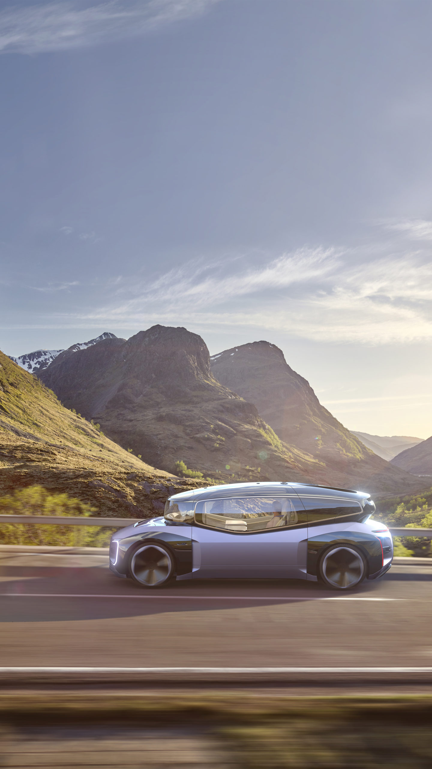 The futuristic exterior of the GEN.TRAVEL is divided into two parts: The transparent, glass cabin is perfectly incorporated into the lower section, which houses all the technical features. The edge of the window is at waist level, making it very low so as to maximize the view of the outside. At the same time, when passengers are lying down flat in the car, they do not experience any external influences. The wing doors of the GEN.TRAVEL facilitate better entry and exit.