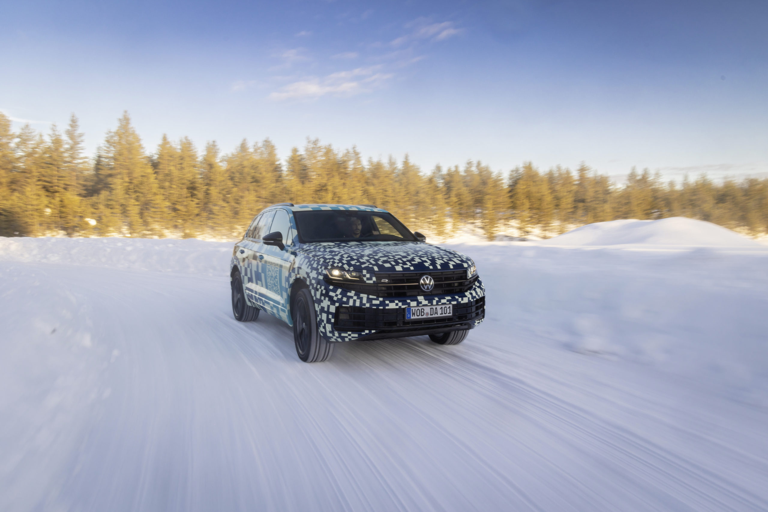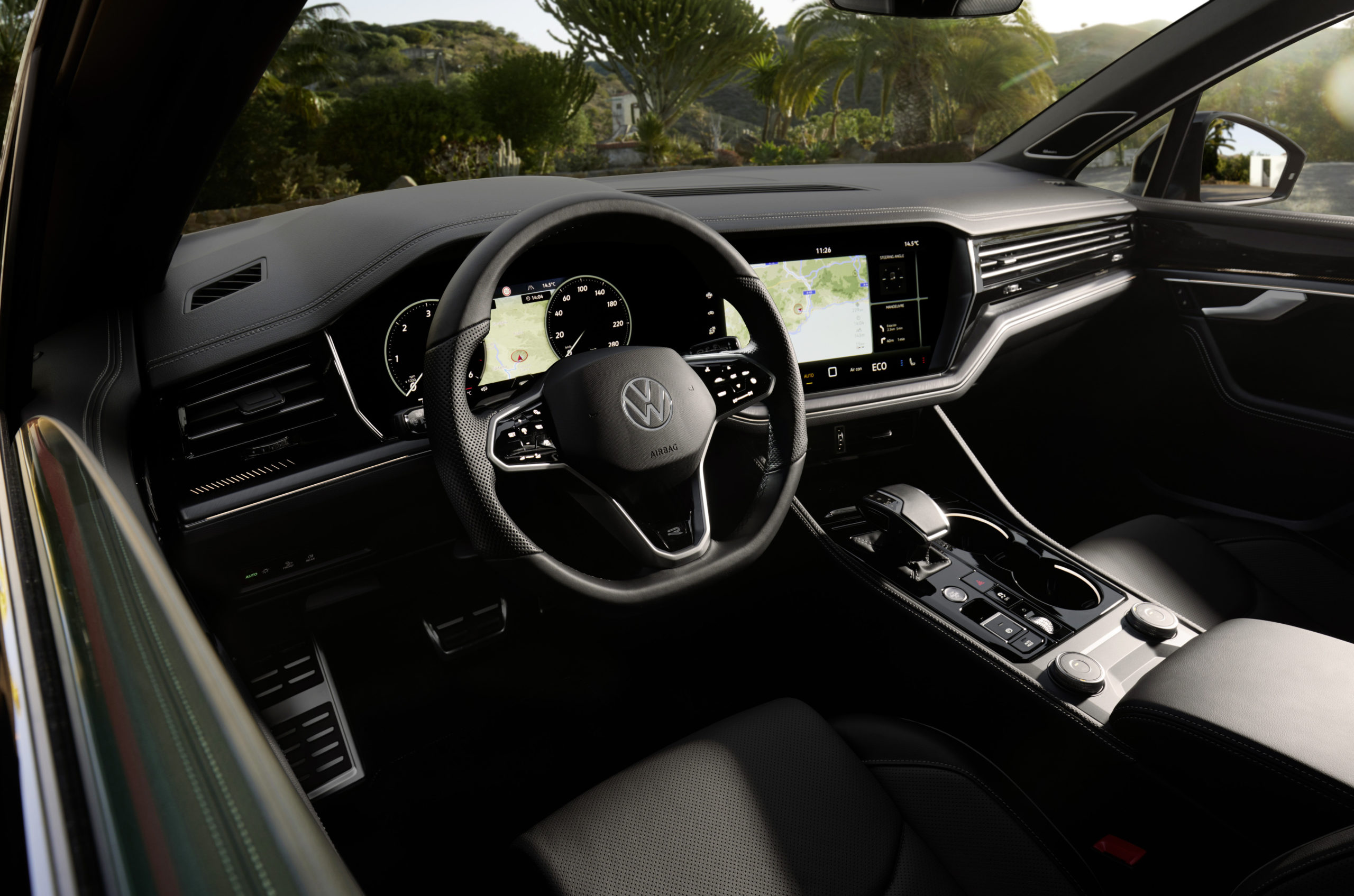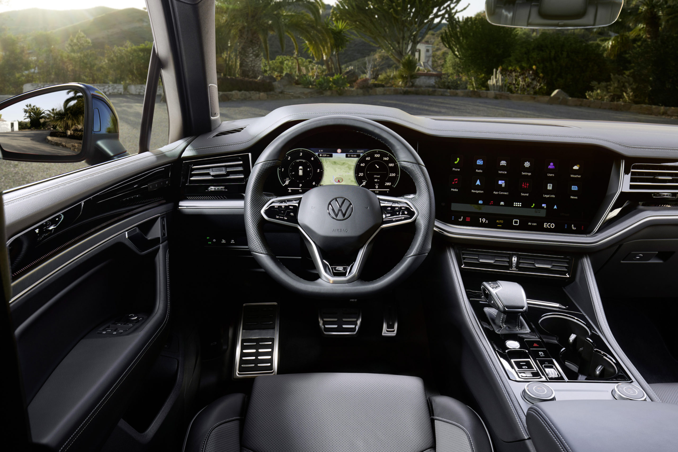 Equipment. The new model will be launched in Germany in a basic version with the current front design (from €69,200) and in the two exclusive lines “Elegance” (from €75,070) and “R-Line” (from €79,660). Positioned above is the top-of-the-range model: the sporty, elegant Touareg R eHybrid developed by Volkswagen R (from €93,870).