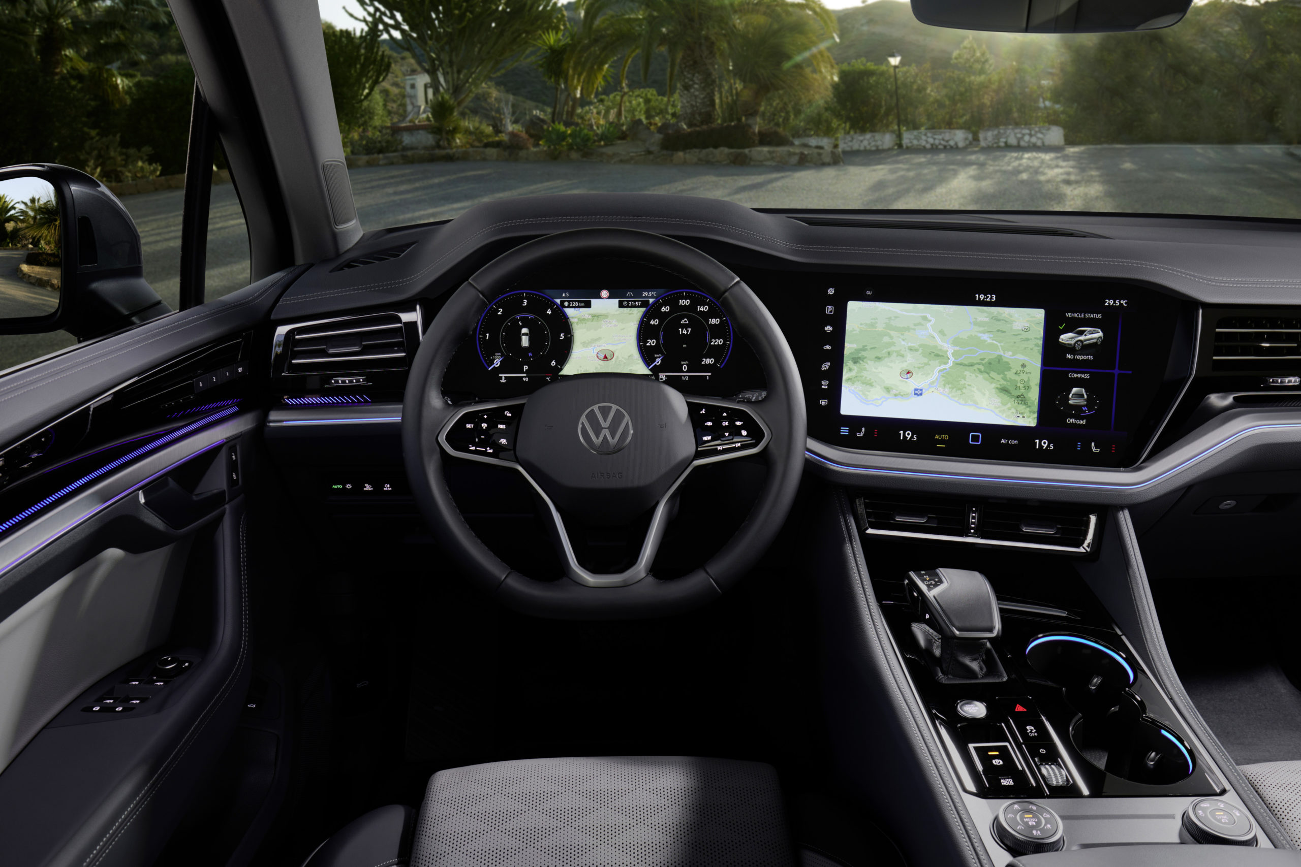 Volkswagen is upgrading the third generation of the Touareg with extensive improvements: the suspension as well as the display and operating concept of the full-size SUV have been revised, and the front and rear design have been sharpened. Particularly striking features are the newly developed HD matrix headlights at the front and the LED taillights, which are realised as a light strip. For the first time in Germany it incorporates a red-illuminated Volkswagen logo. Presales will begin tomorrow on Thursday, 25 May. Prices start from €69,200.