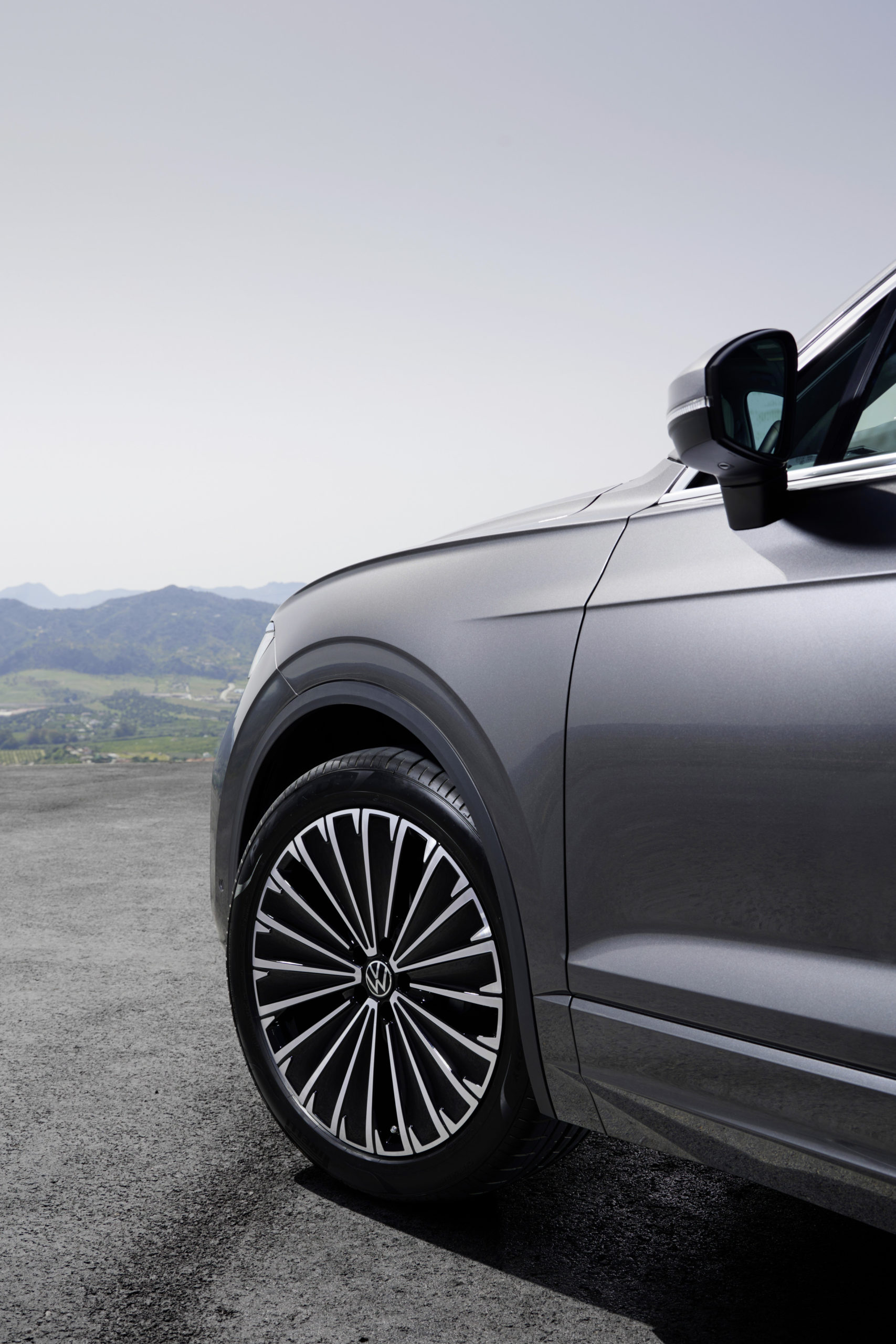 Sharpened design. The new premium SUV can be recognised immediately by the new front and rear design. At the front, the unit formed by the radiator grille, headlights and the front apron have been given a new look. The design of the rear end is also sharper: it now has a continuous horizontal LED strip for the taillight clusters and incorporates a Volkswagen logo