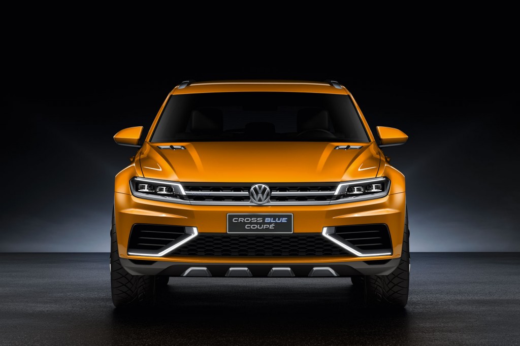 3D Front End. A key element of Volkswagen design DNA is the predominance of horizontal lines. The front end of the CrossBlue Coupé follows this to perfection, yet the designers have created a new layout by integrating the lighting architecture into the grille area. The key elements of the front end design are the free-standing LED headlights, LED light signature, and radiator grille trim.