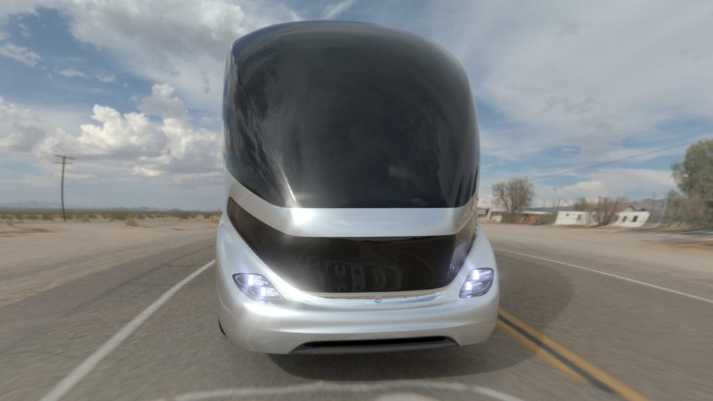 Since aerodynamics on a long distance zero emission coach are from the utmost importance to extend the range and reduce the drag coefficient, Steenstra suggested a central driving position to reduce the initial frontal impact of the coach, allowing it to improve its drag coefficient substantially compared to all major competitors. The coach would be built for the Chinese as well as the US markets, so the central driving position would prove to be of importance in that area as well, since it reduces the cost for making special LHD and RHD version of the coach.