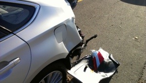 The Jeep behind me was suddenly hit with a lot of force by a Black Chevy Tahoe, older model, probably late 90’s. the sheer force of the impact slammed the Jeep into the back of my 2013 Toyota Avalon Hybrid, which Toyota had kindly provided for evaluation.