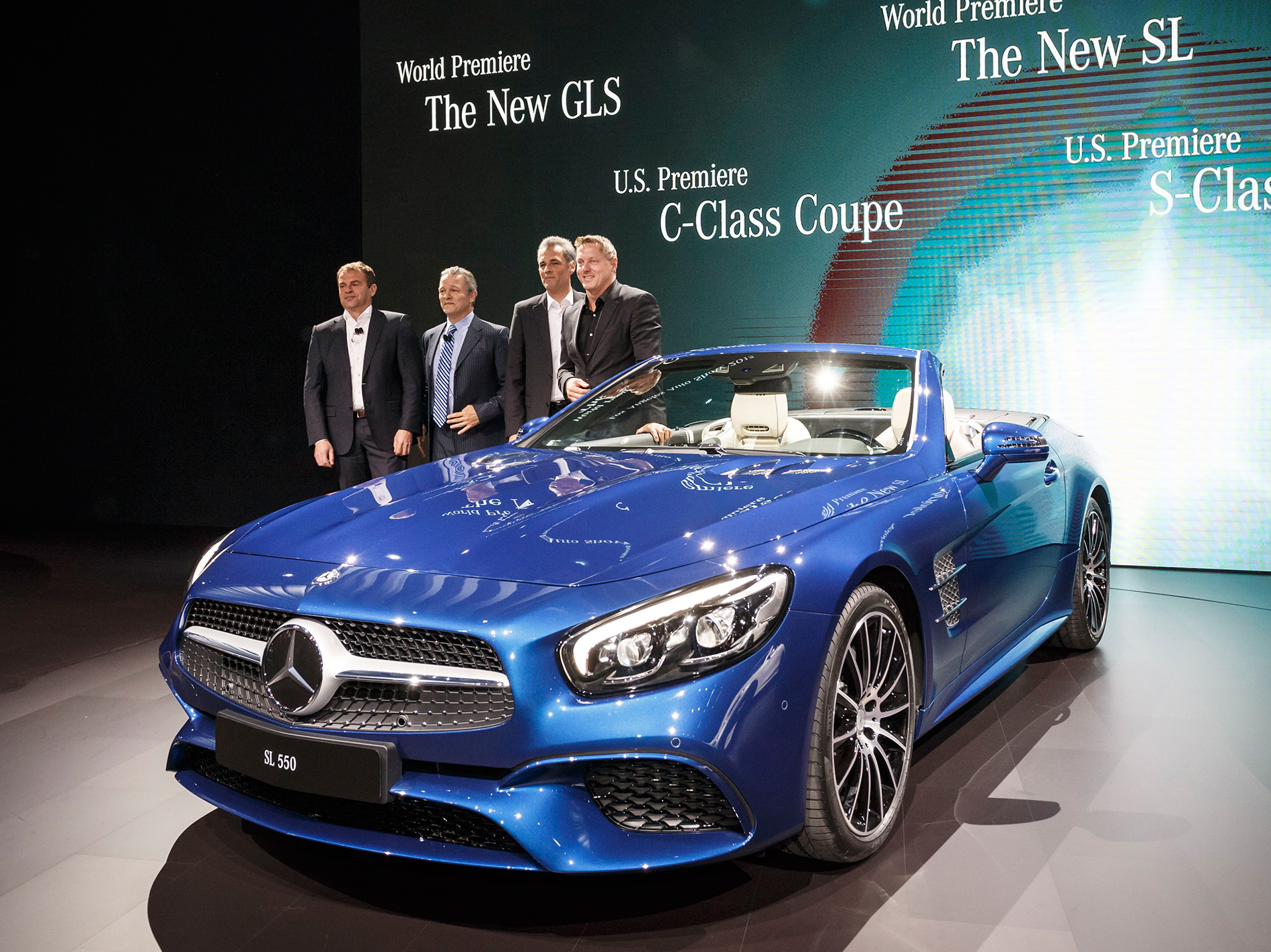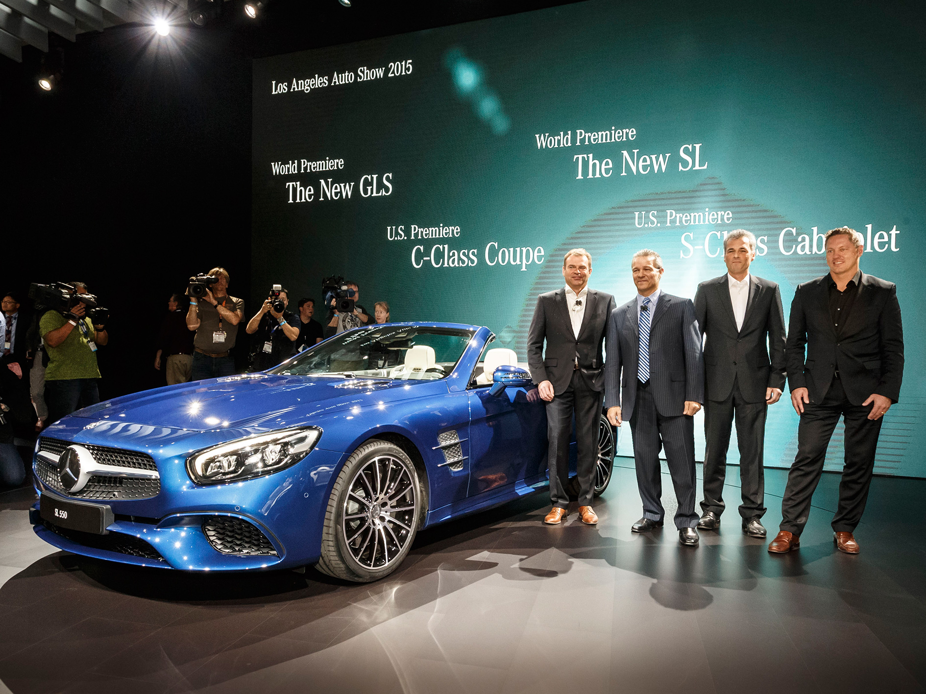 Gleich zwei Weltpremieren in der Kategorie „Dream Cars“ feiert Mercedes-Benz auf der Los Angeles Auto Show 2015. Unter der kalifornischen Sonne debütieren der neue Luxury-Large-SUV GLS und die Roadster-Ikone SL. Ihre laufende Modelloffensive verstärkt die Marke mit dem Stern durch die US-Premieren des S-Klasse Cabriolets und des C-Klasse Coupés, die in L.A. auch als leistungsstarke AMG Versionen im Rampenlicht stehen. v.l.n.r:Tobias Moers, Stephen Cannon, Hans-Dieter Kurz, Gorden Wagener Mercedes-Benz is celebrating no less than two world premieres in the "Dream Cars" category at the 2015 Los Angeles Auto Show. The new GLS luxury large SUV and the iconic SL Roadster are having their debut in the Californian sun. Mercedes-Benz is reinforcing its ongoing model initiative with the US premieres of the S-Class Cabriolet and the C-Class Coupé, which are also in the limelight in L.A. in the guise of high-performance AMG versions. v.l.n.r:Tobias Moers, Stephen Cannon, Hans-Dieter Kurz, Gorden Wagener