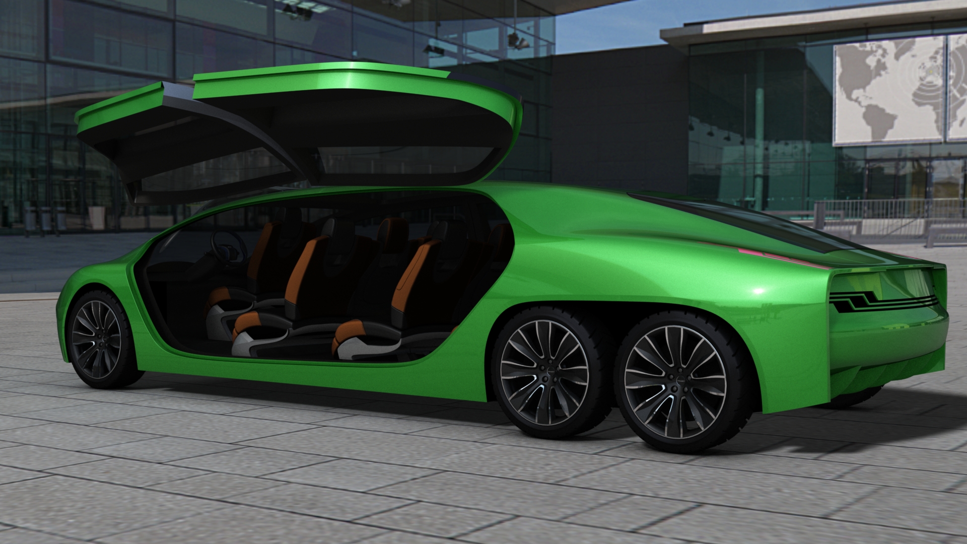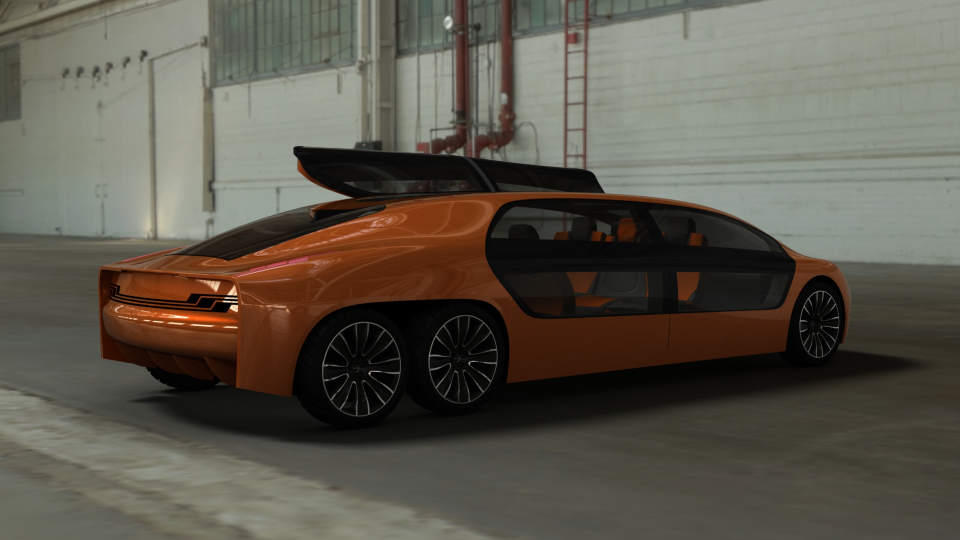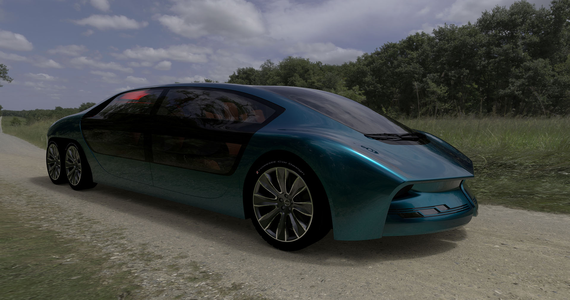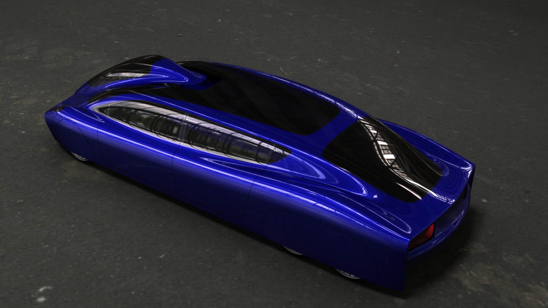 In the below video you can see a complete development of the various stages of development for the Taxi project shown before and this Limousine project. With the limousine, since it was intended as a high speed Intercity type vehicle, we considered closing the wheels off completely to enhance the aerodynamics on freeway usage. The driving position, even to the extend of higher and more forward and separate from the passenger area, was prevalent throughout the process.