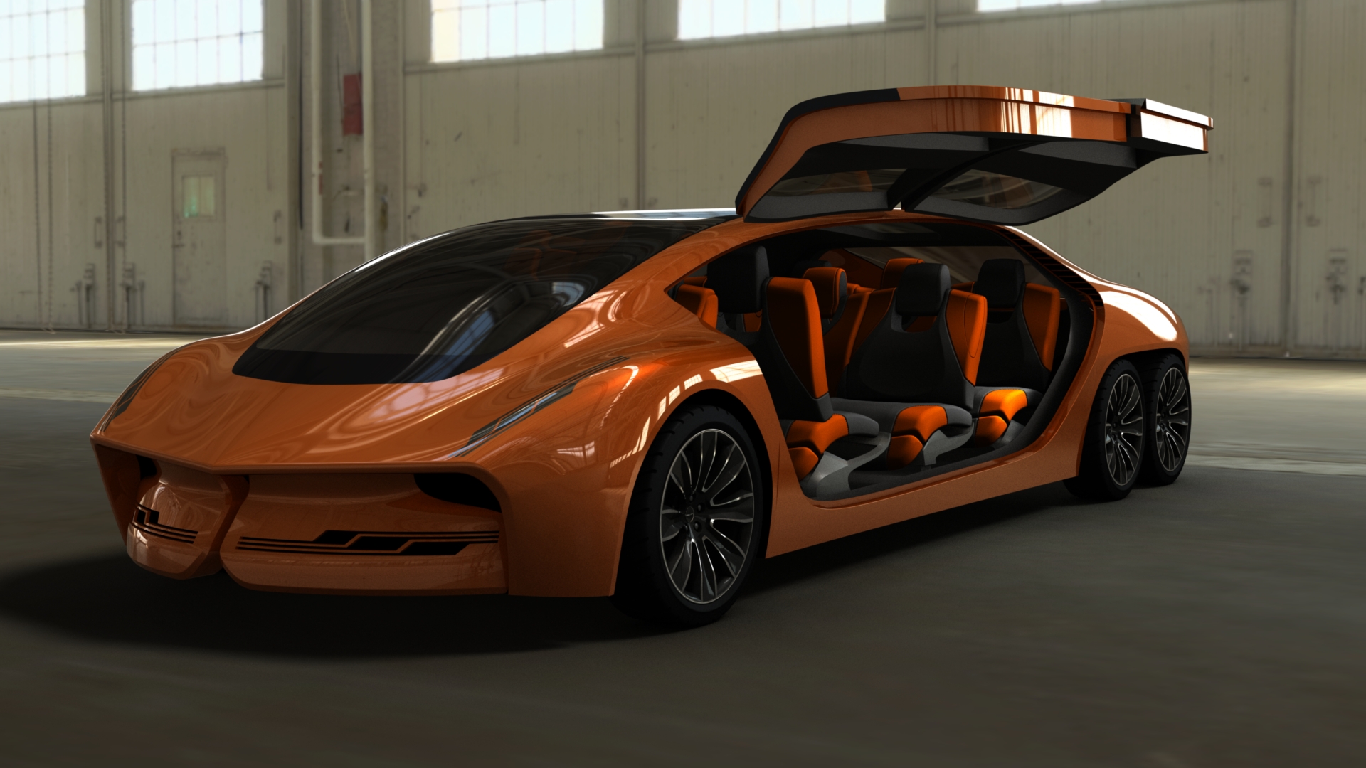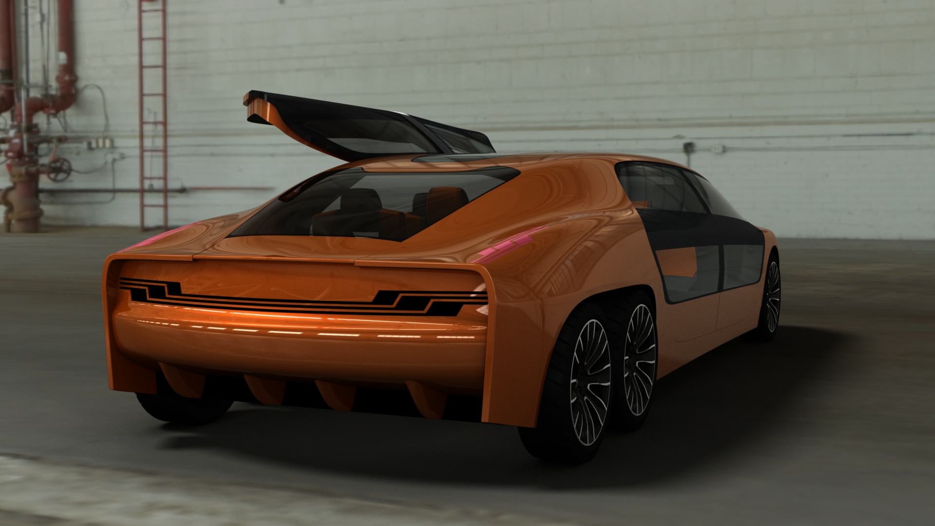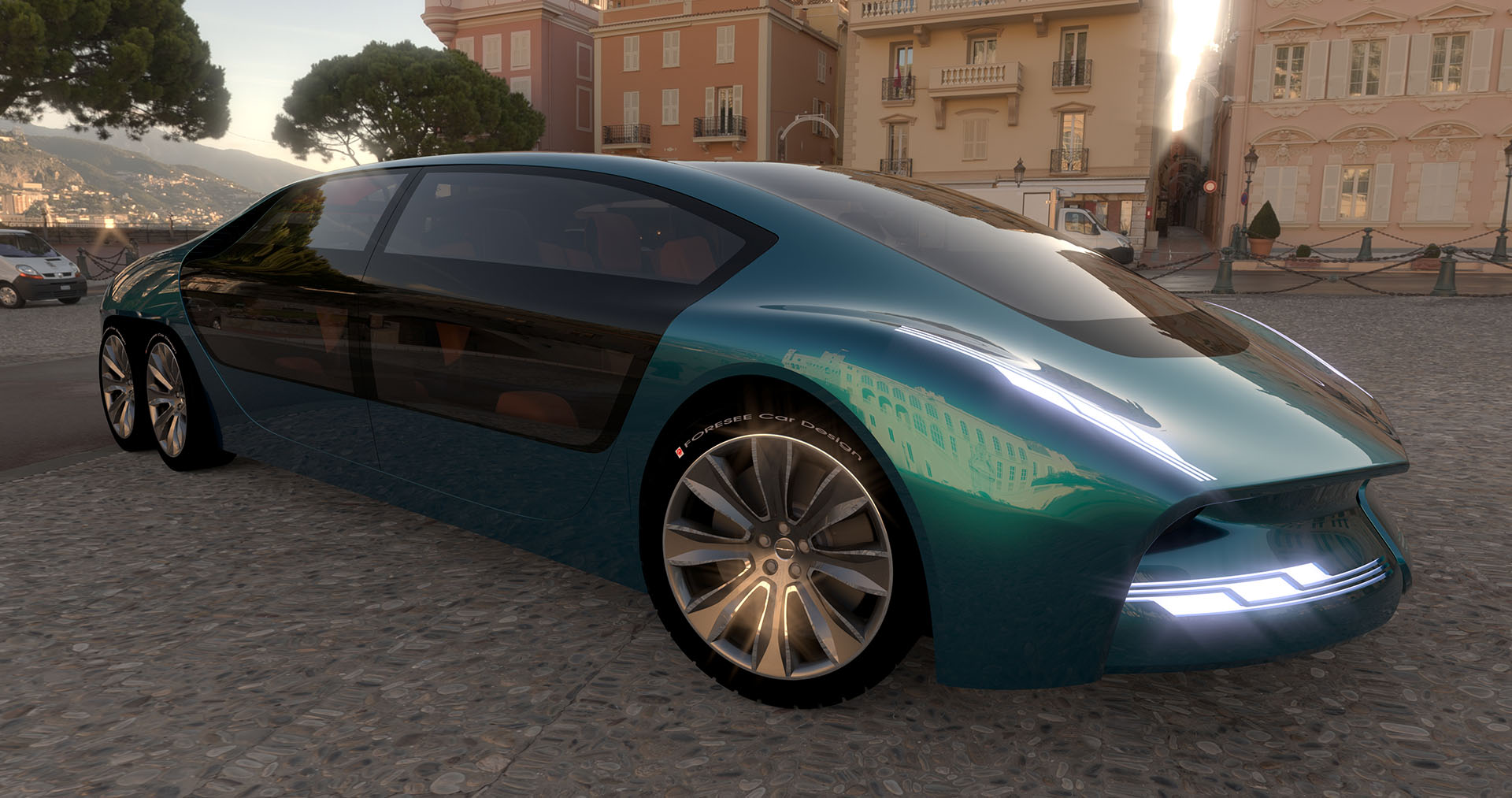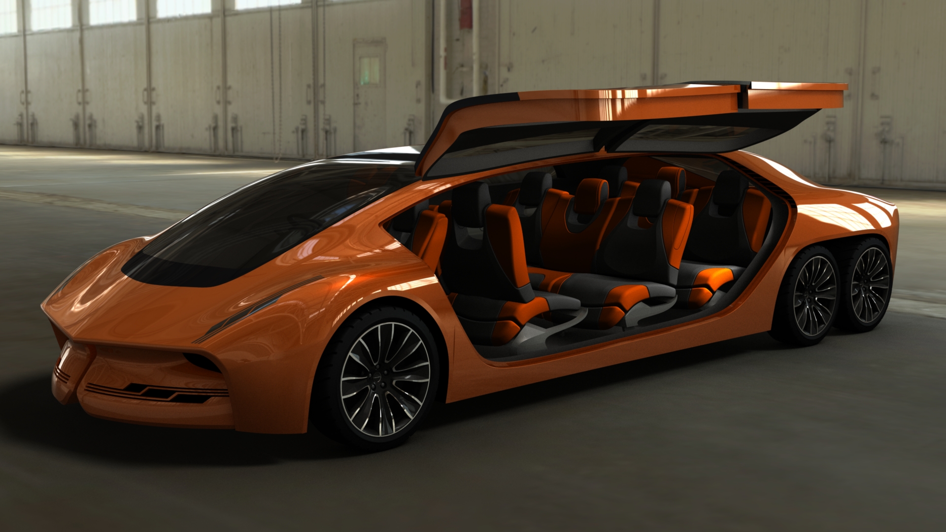 In the below video you can see a complete development of the various stages of development for the Taxi project shown before and this Limousine project. With the limousine, since it was intended as a high speed Intercity type vehicle, we considered closing the wheels off completely to enhance the aerodynamics on freeway usage. The driving position, even to the extend of higher and more forward and separate from the passenger area, was prevalent throughout the process.