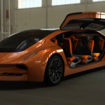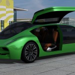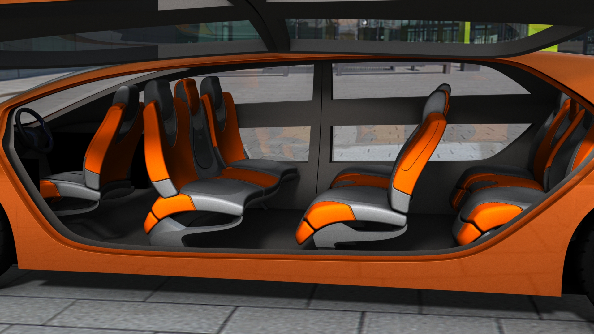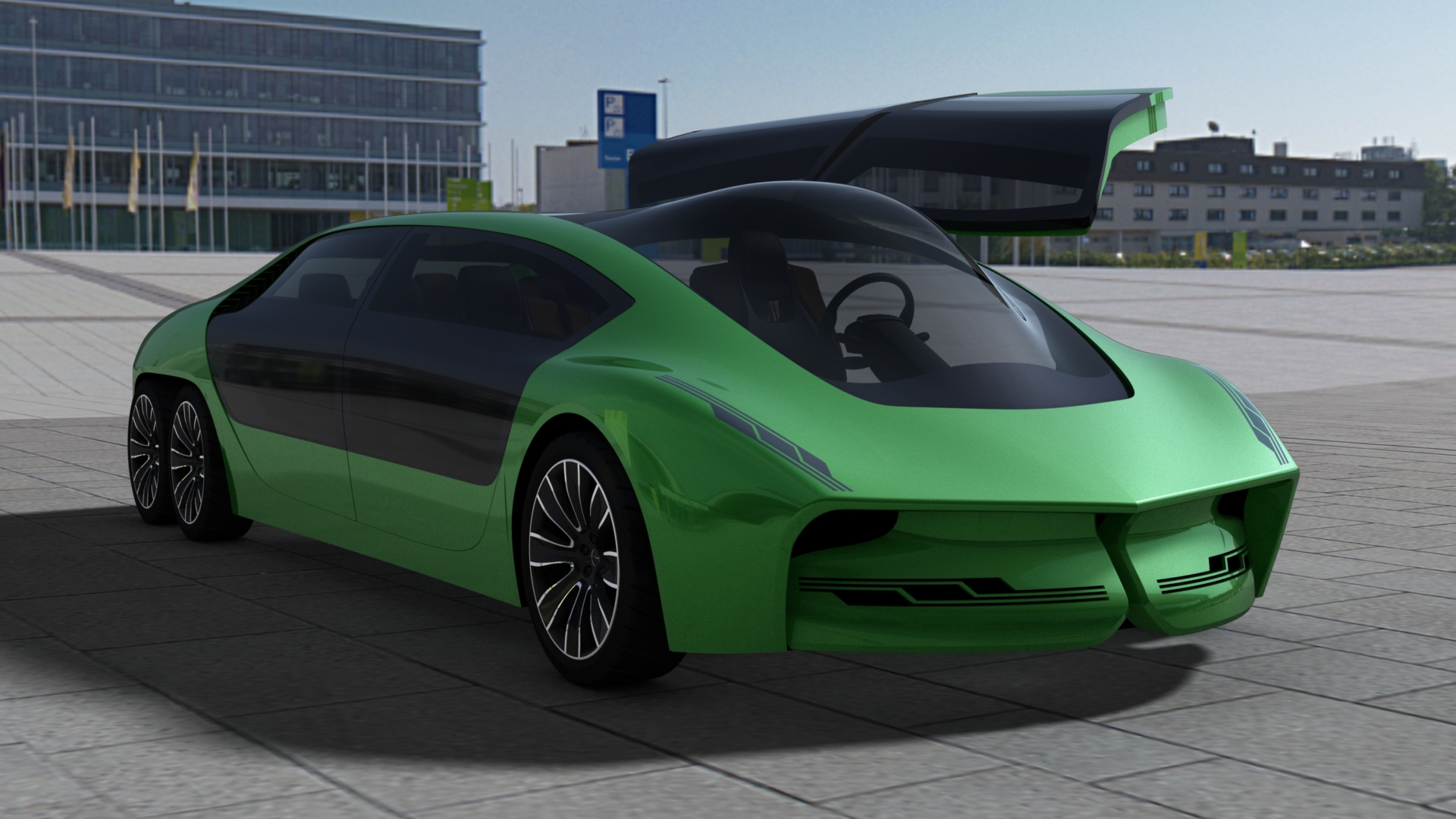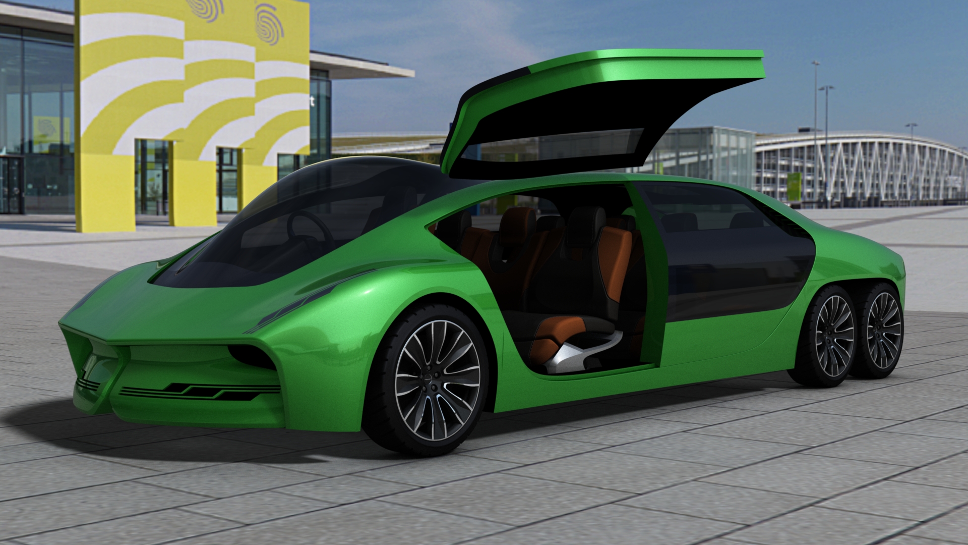 Together with George Gaffoglio from Metalcrafters Inc. we wanted to see if we could push that into a new category that would provide a unique, modern and attractive design and combine that with the need for green and clean, and add a heavy dose of user friendliness and practicality in the mix. The outcome is this sleek 9-seat vehicle with a central driving position, 3 axis of which 2 are driven in the rear by the strong electric engines.